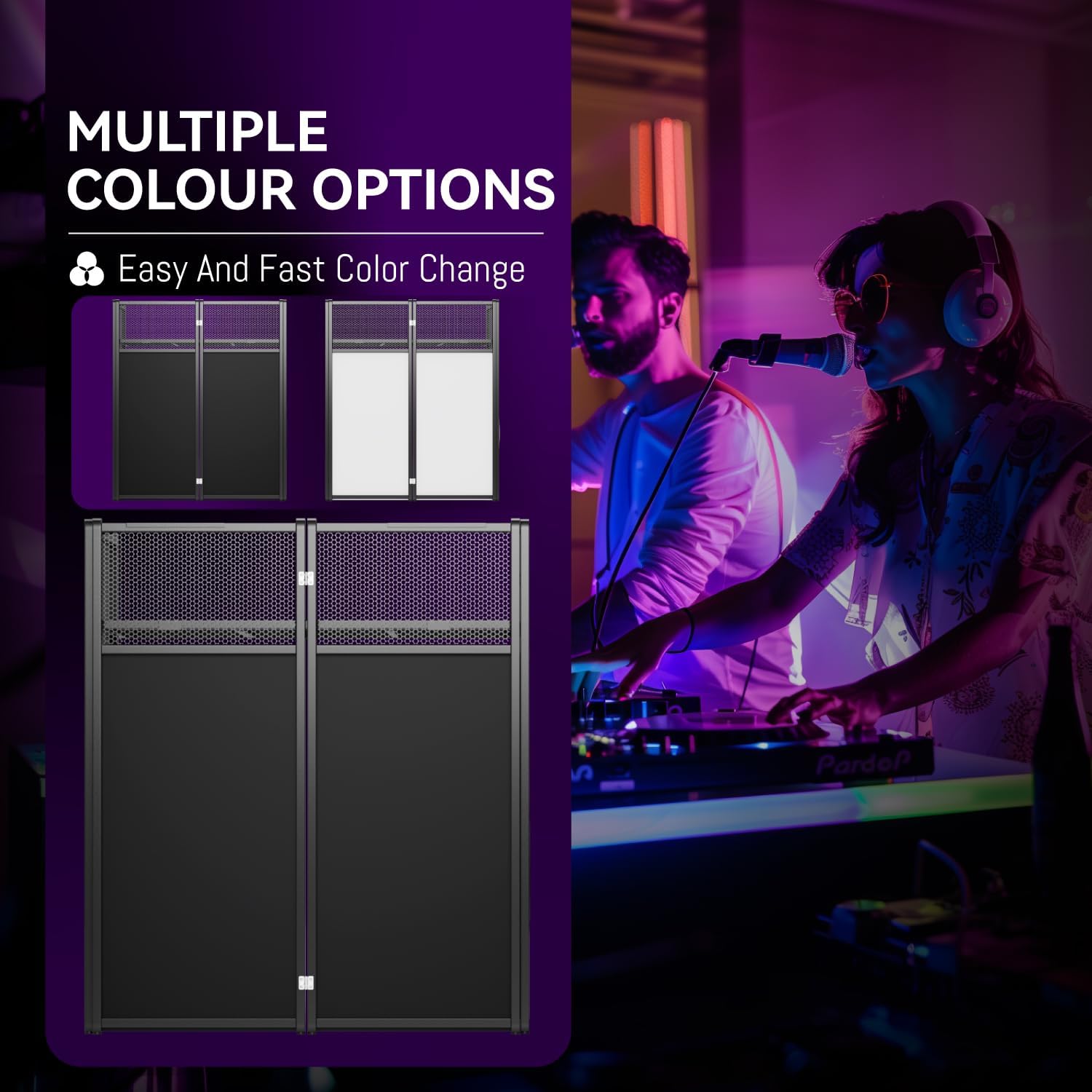 - 【Easy Installation & Foldable Design】The DJ stand facade can be almost completely folded flat for easy carrying. It consists of four folding panels and 2 desktop panels, which can be quickly installed and disassembled in just a few minutes without any tools. We also configure a carrying bag for you to carry and transport conveniently