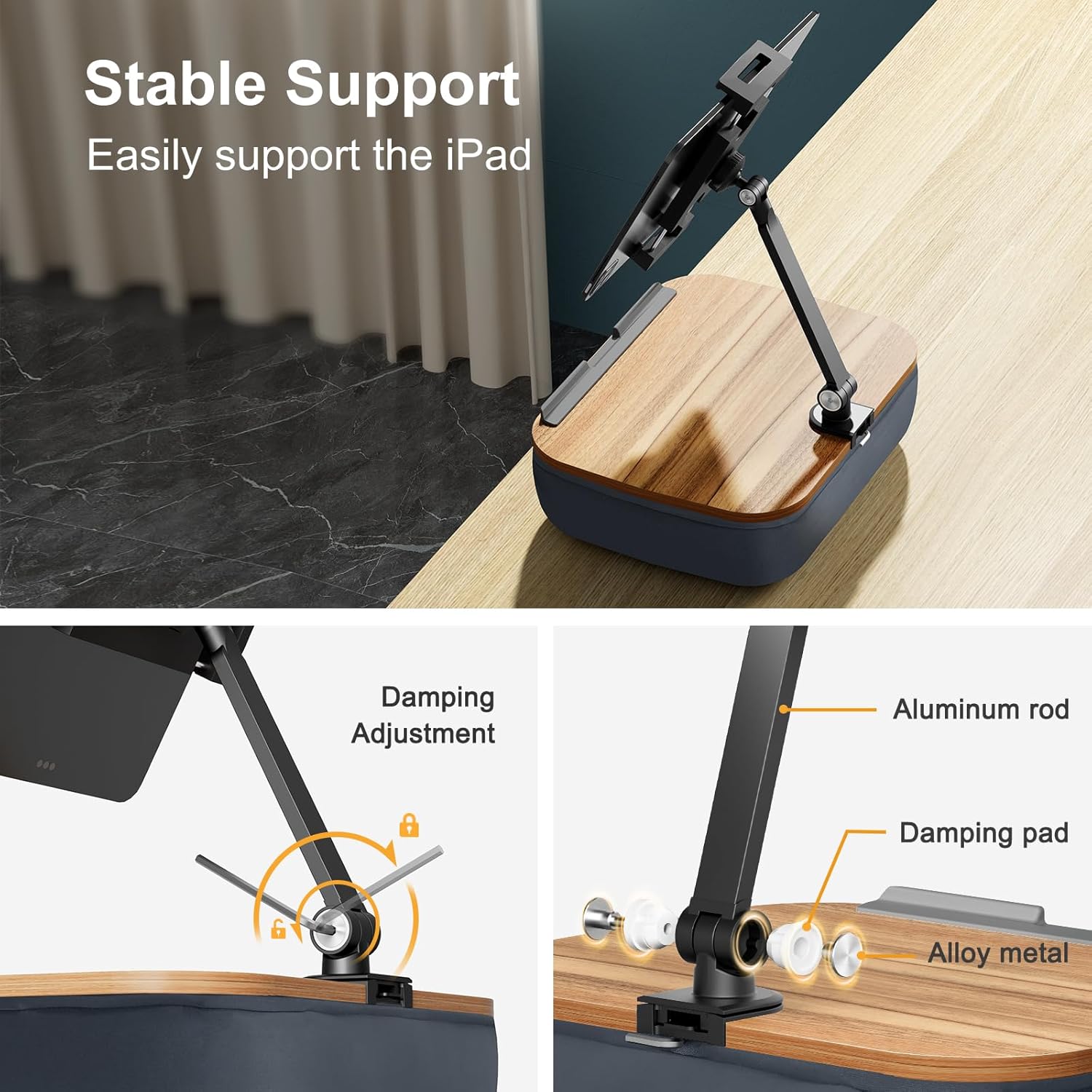 - 【FLEXIBLE ADJUSTMENT】The detachable tablet arm features two 180° adjustable joints, securely fixed with metal screws, ensuring flexible positioning and stability for optimal use.
