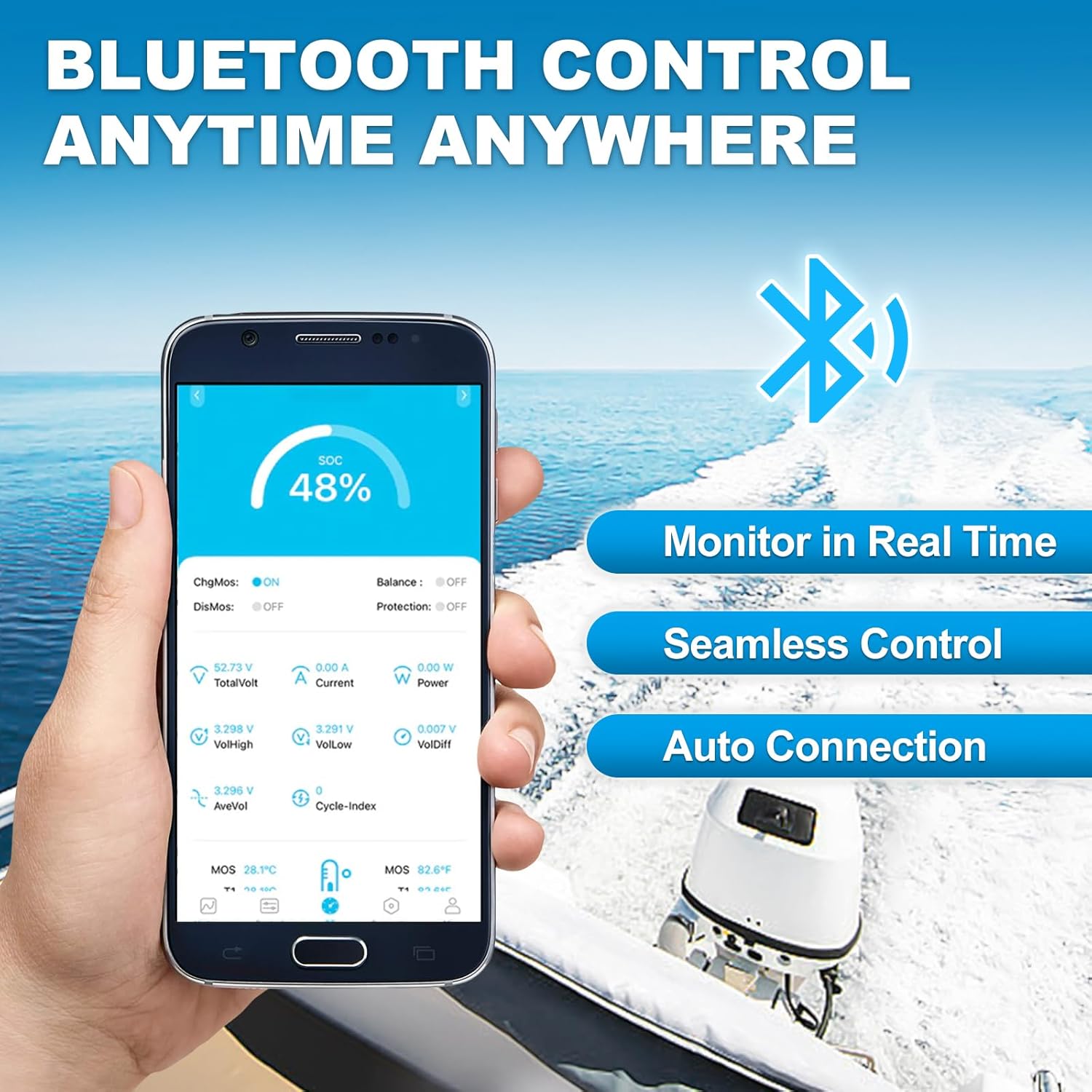 - ✅ EXCELLENT PERFORMANCE: Our 12V trolling motor battery offers 1.28kWh of energy in a compact design. It supports a maximum load of 1536W with a continuous discharge current of up to 120A (peak 500A for 3 seconds), making it ideal for trolling motors. The built-in Bluetooth function allows you to automatically connect and monitor the battery anytime, anywhere.