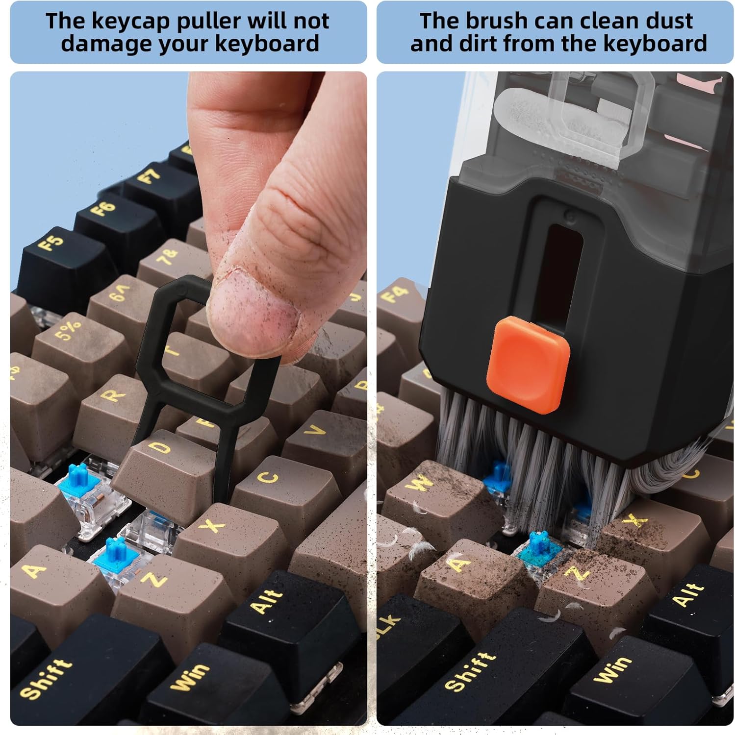 - 【PROFESSIONAL KEYBOARD CLEANING KIT】 The laptop screen cleaner keyboard cleaner can pull out the keycaps of gaming keyboards and mechanical keyboards. A retractable keyboard brush works on laptops and keyboards, while the mini high-density brush is great for deep cleaning between keys for cleaning between flatter keys on a laptop, the metal pin tip gently removes any stains. This electronic cleaning kit macbook cleaner totally meets professional cleaning needs