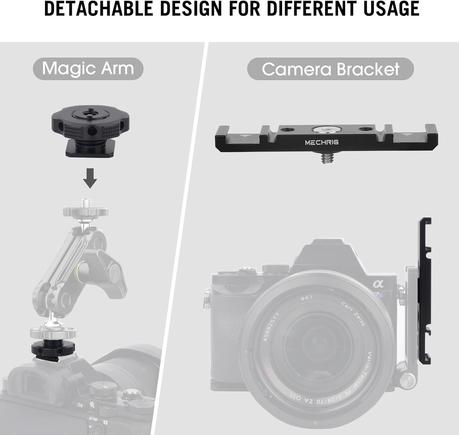 - Detachable Design - Swap Setups in Seconds: Split the cold shoe base and extension bar to attach to camera cages, overhead rigs, or DIY brackets. Ideal for tight spaces or multi-cam livestreams