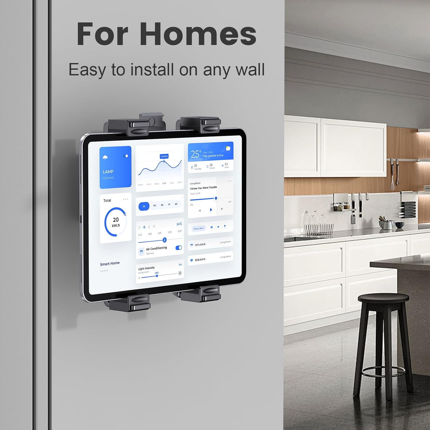 - 【No Drill Tablet Wall Mount with 3M Adhesive】Installs in seconds using damage-free 3M adhesive base—no tools or drilling required (perfect for renters!). Removes cleanly from tiles, walls, or furniture—ideal for iPad wall mounts in temporary spaces.