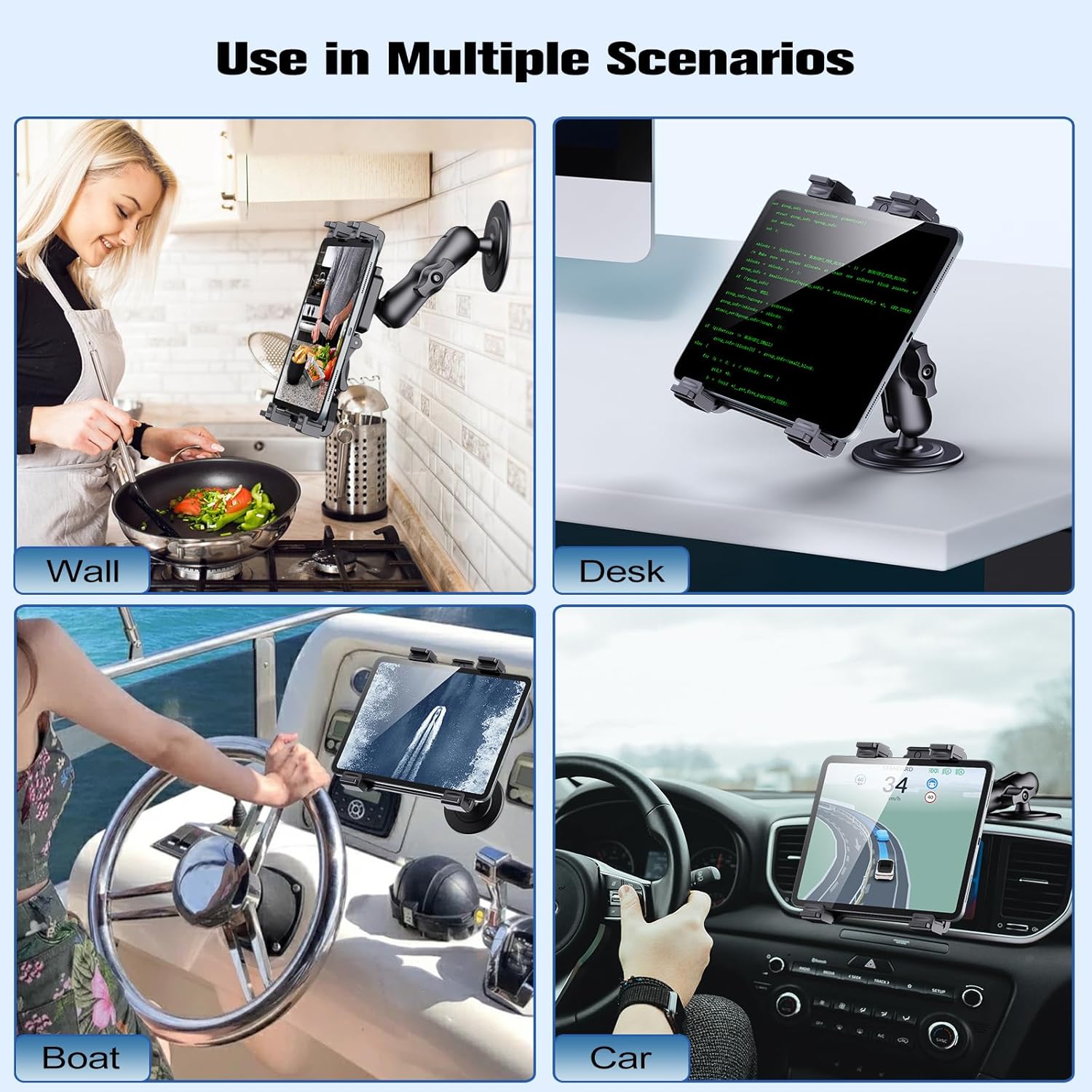 - 【Multi-Scene Tablet Wall Mount for Home & Office】Self-adhesive tablet wall holder works in kitchens, bathrooms, or bedrooms—stream, cook, or video call hands-free. Adjustable arm length fits wall mounting over sinks, beds, or counters.