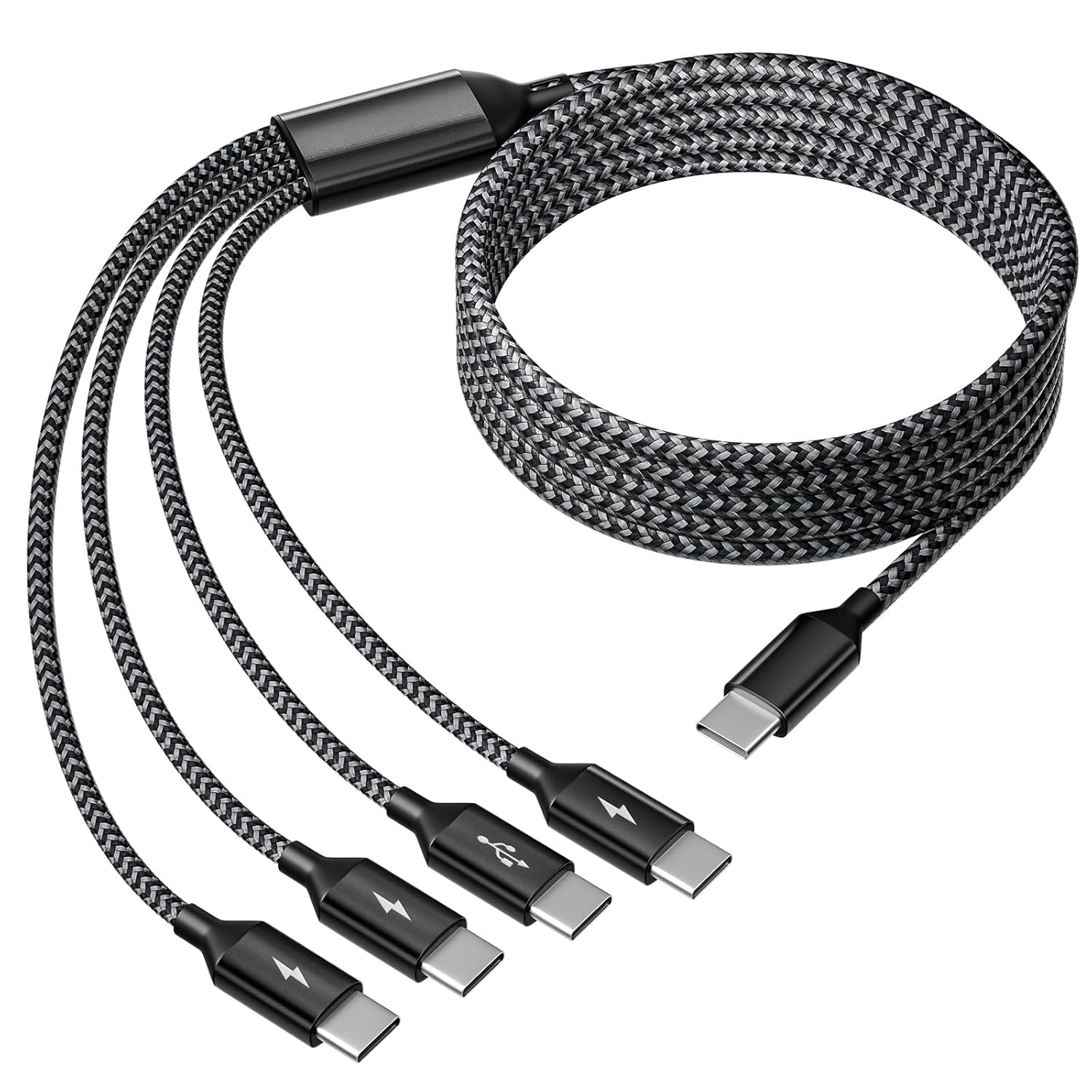 USB C Splitter Multi Charging Cable, Dual Type C Charger Cord,4 in 1 Multiple Nylon Braided Cable with 4 Type-C Connectors Compatible with iPhone 15 Pro Max/Samsung Galaxy/Tablets/Google-1Pack 5FT.