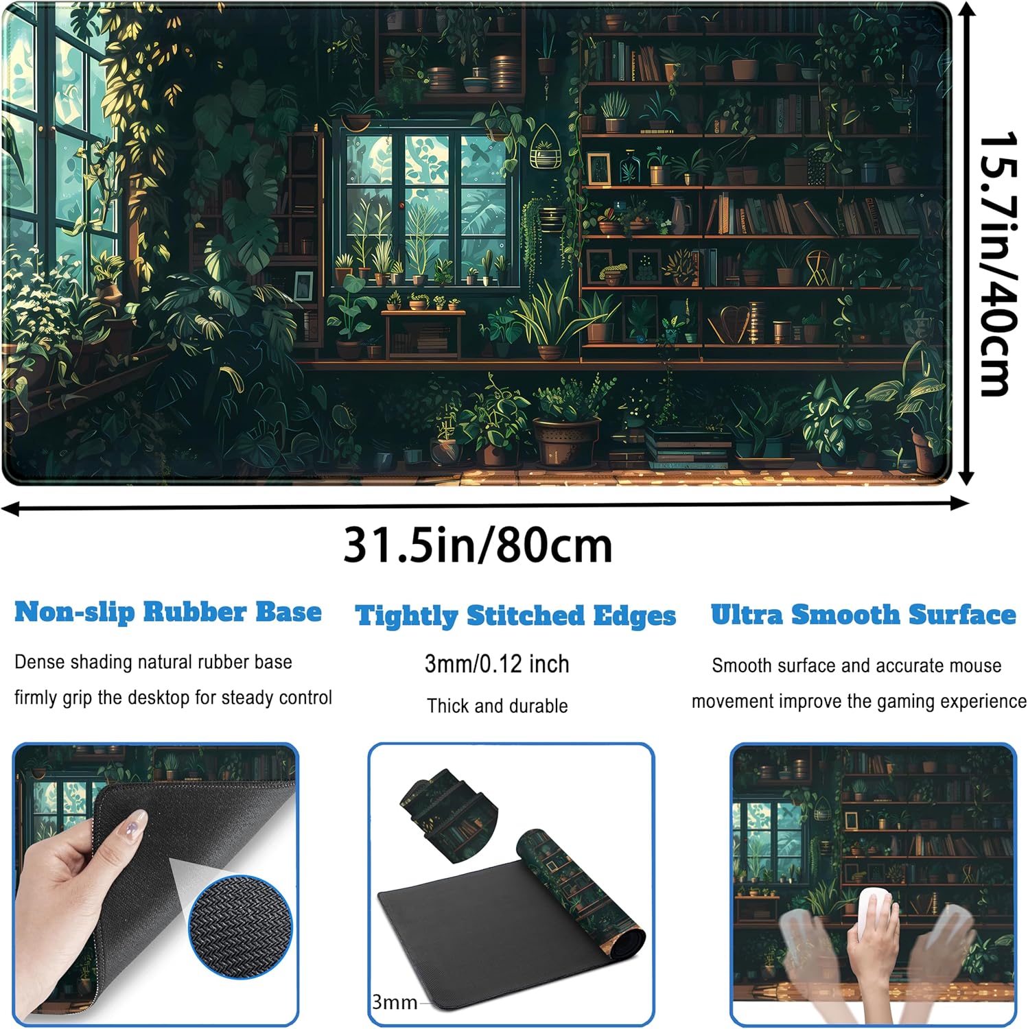 - LARGE SIZE: 31.5 in×15.7 in (800mmx400mm). Large size, give the mouse enough space to move, meet your space needs
