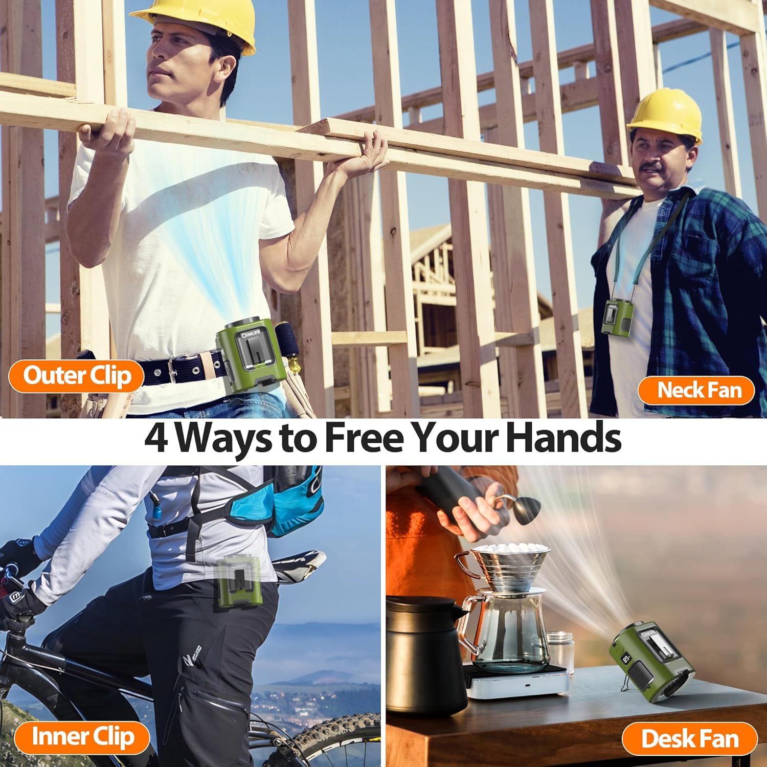 - Hands-Free Cooling: COMLIFE Portable Waist Fan offers multiple functions as a waist clip fan, neck fan, desktop fan, and handheld fan, fully liberating your hands. With outer and inner clip options, you can wear it comfortably as a belt fan or undershirt fan—perfect for on-the-go cooling