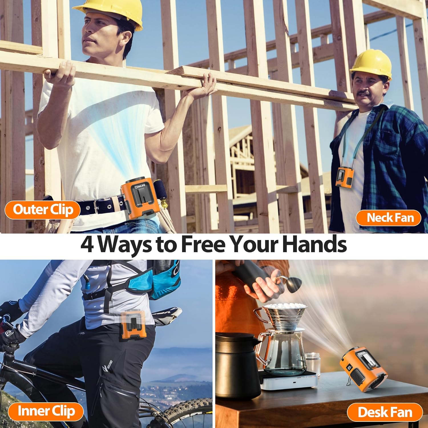 - Hands-Free Cooling: COMLIFE Portable Waist Fan offers multiple functions as a waist clip fan, neck fan, desktop fan, and handheld fan, fully liberating your hands. With outer and inner clip options, you can wear it comfortably as a belt fan or undershirt fan—perfect for on-the-go cooling