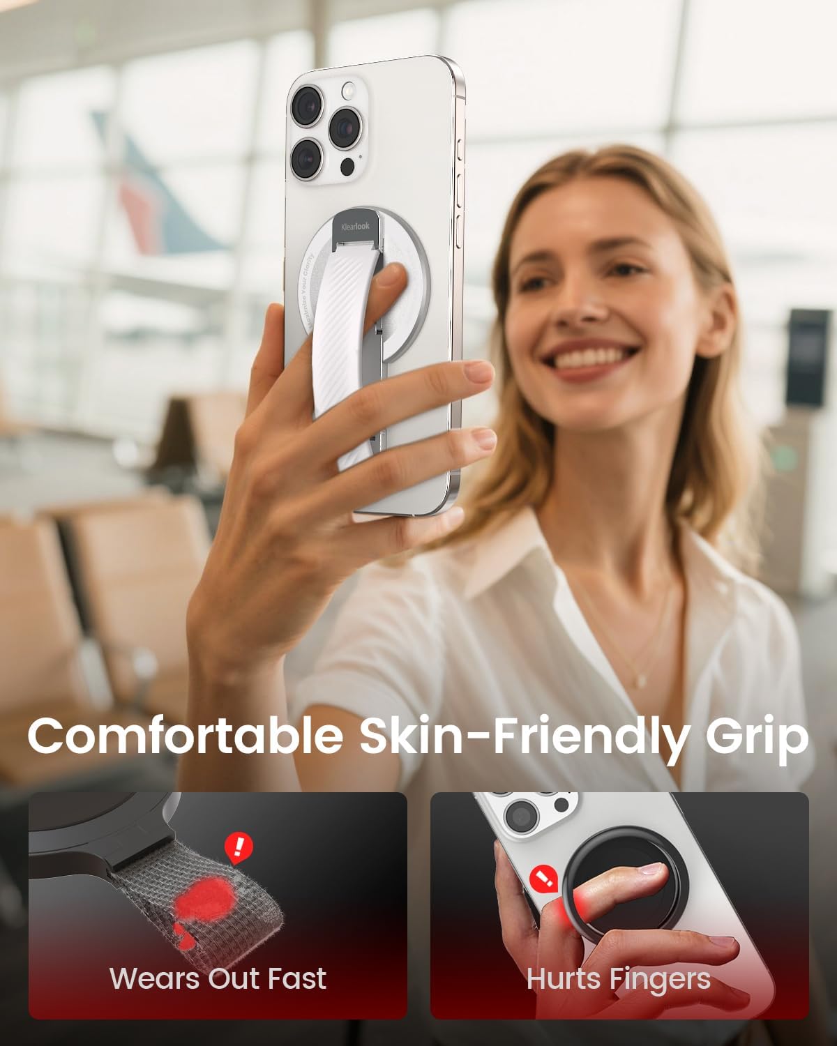 - [Secure Hold That Stays Put] Built with upgraded N52 magnets, this magnetic phone grip delivers double the magnetic force for a rock-solid hold. Whether you're on the move or staying still, your phone locks into place securely, no drops. No drops, no slips, no worries—even during one-handed use.