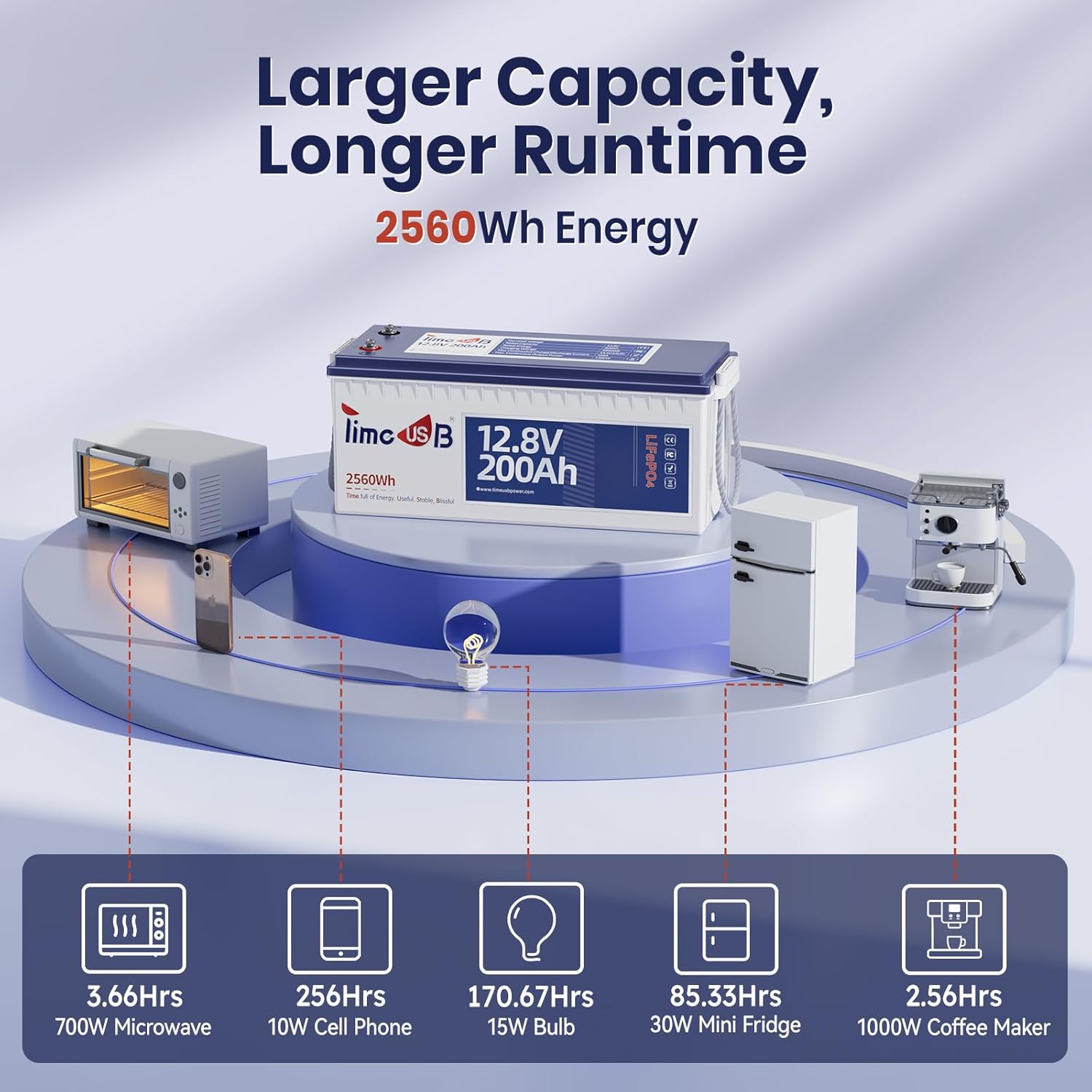 - ✅Lightweight and High Energy Density: This 12V 200Ah lithium battery weighs significantly less than traditional lead-acid batteries but offers a larger energy capacity. With 2560Wh of usable energy, it is the best replacement for lead-acid batteries, providing superior performance and efficiency in marine, RV, and off-grid power systems
