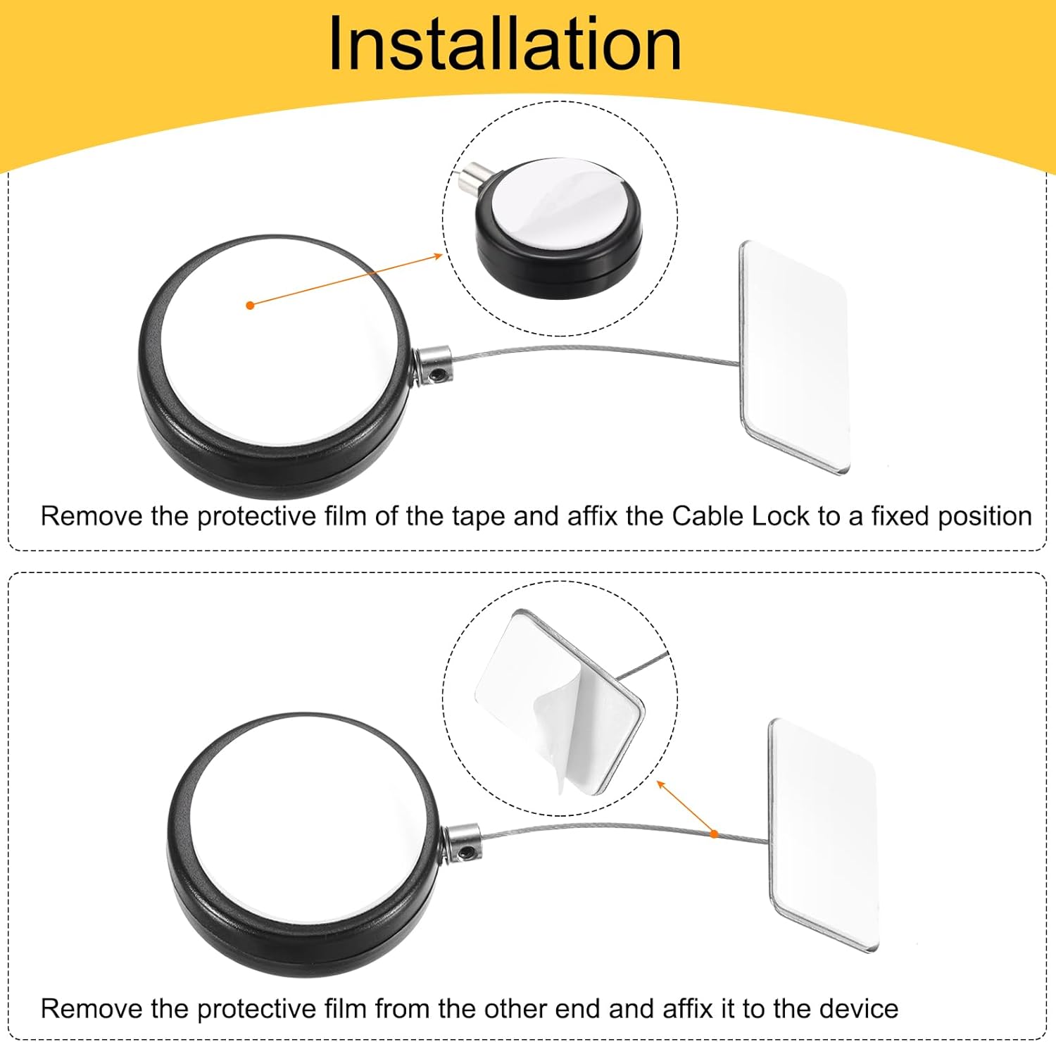 - This Retractable Cable Lock with Adhesive Patch features a retractable cable for easy length adjustment, with adhesive patches on both ends used to securely attach the device to the desktop and other surfaces. Mainly used in offices, libraries, cafes, etc., it can fix one's own mobile devices such as laptops and phones on the desk to prevent theft.