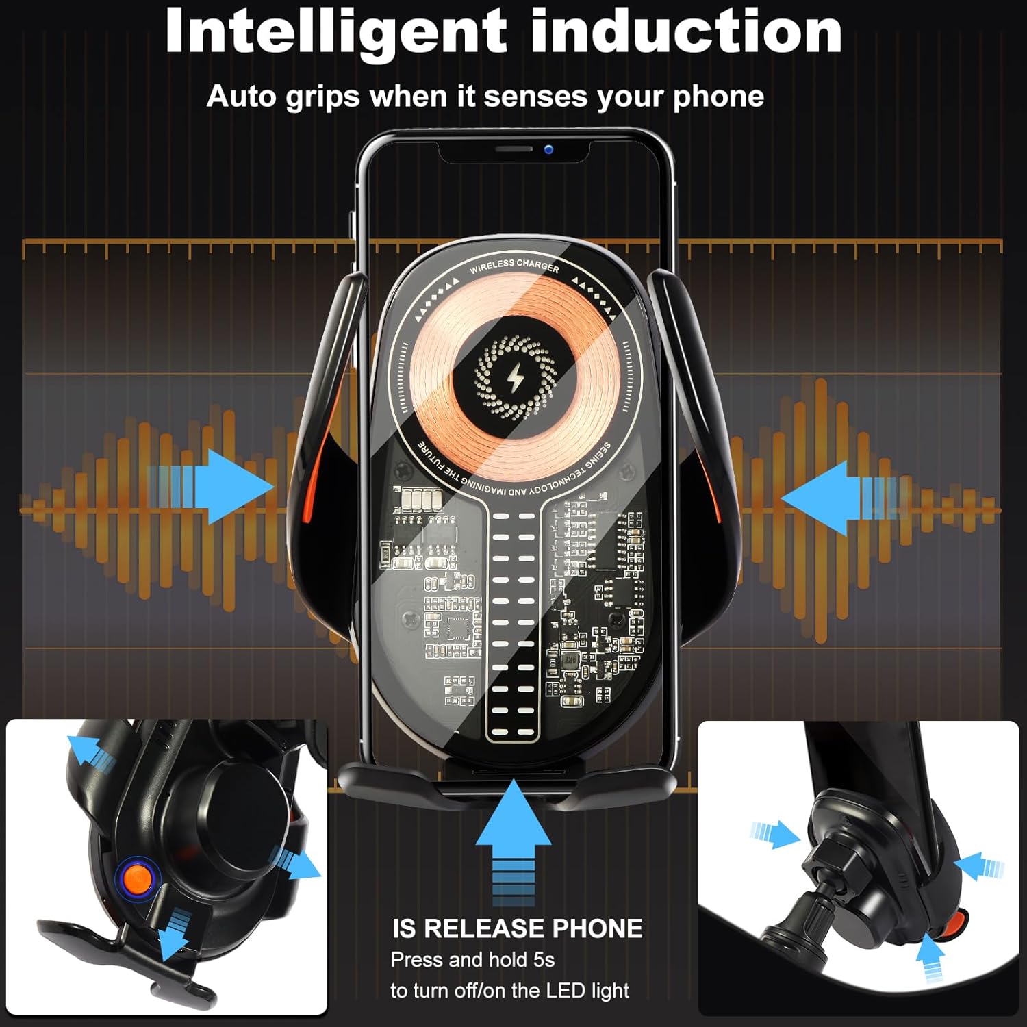 - WIRELESS FAST CHARGING, EXPERIENCE THE PLEASURE OF FAST CHARGING: 15W Ultra-Fast Wireless Car Charger – "Fully Charged On Arrival" with Tri-Axis Auto-Alignment for 2x Faster Charging vs. Standard 7.5W Chargers. Supports Wireless Car Mount, Qi, and Android Fast Charge Protocols (Wireless Charger for Car; Car Wireless Charger; Samsung Wireless Charger Fast Charging). This Auto Clamping Wireless Car Charger features Car Wireless Auto Sensing Charger Phone Holder technology.
