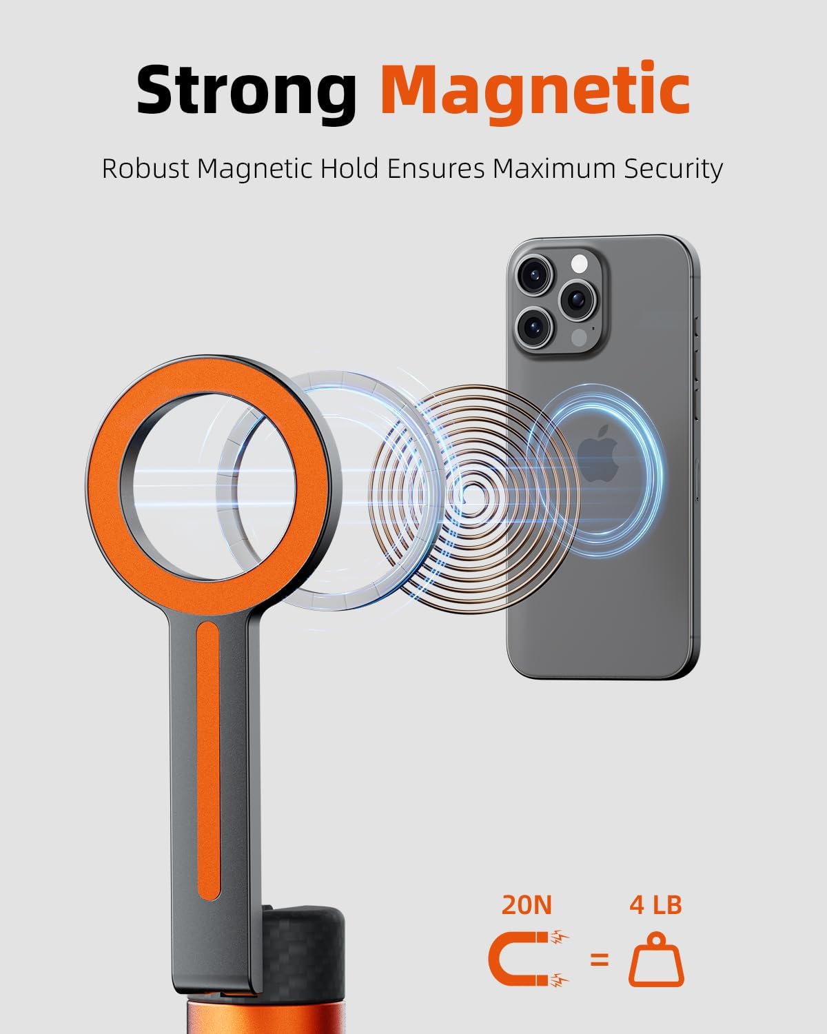- Designed for Magsafe: Featuring a 20N magnetic clip, this magnetic tripod is only compatible with iPhone 16/15/14/13/12 Pro Max Mini and official Magsafe cases, as well as other magnetic phone cases.