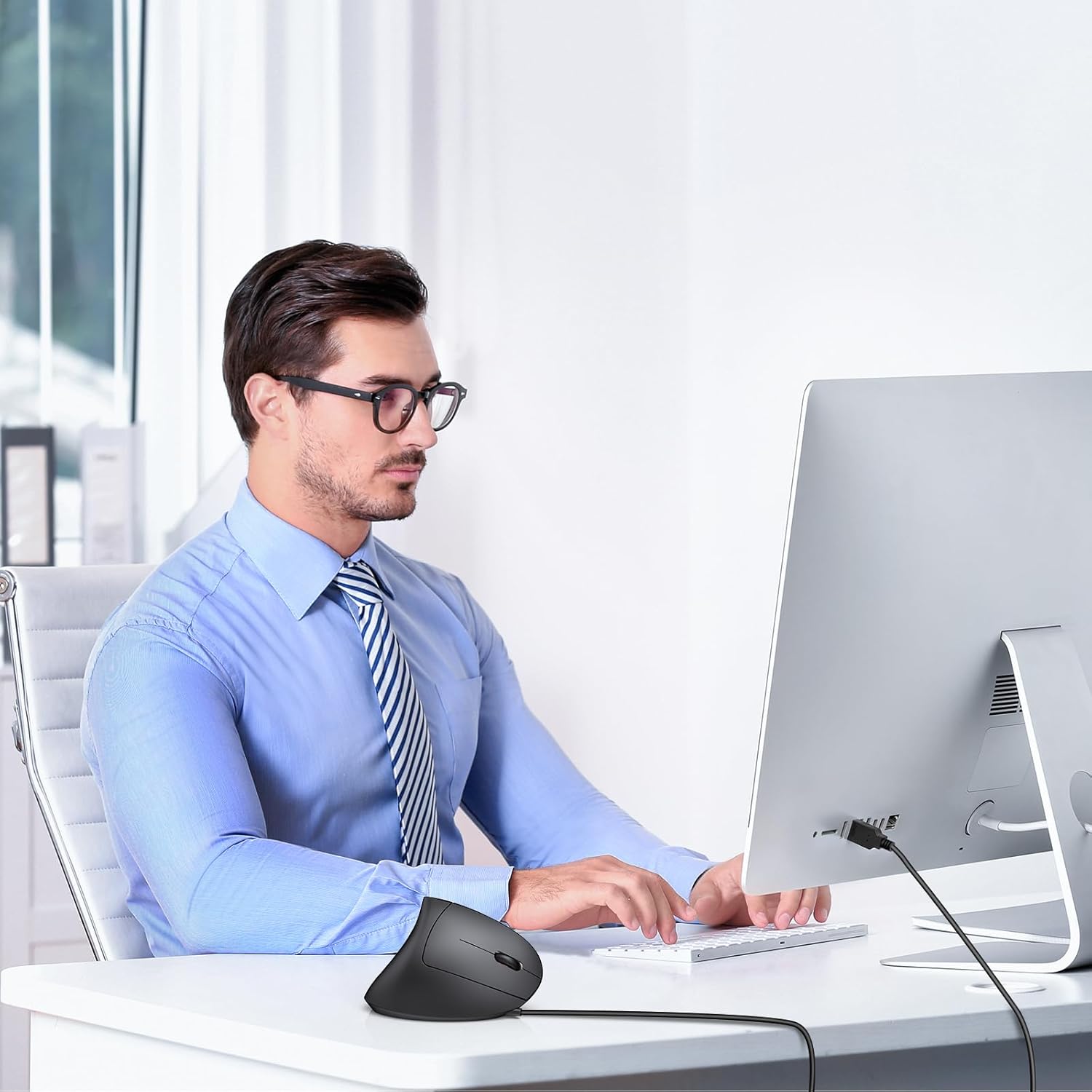 - [Silent Mouse] - The clicks of this vertical mouse are virtually silent, allowing it to be used even in quiet environments like libraries. Using this wired ergonomic mouse reduces disturbance to oneself and others, enabling better focus on the task at hand.
