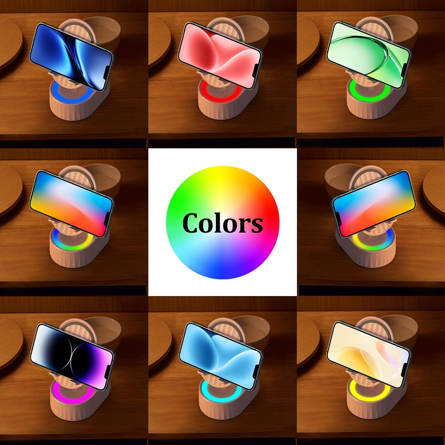 - [Features a unique and fun 5-in-1 design]: A multifunctional device that combines wireless induction speaker, bluetooth speaker, charging, cell Phone Stand, and ambient light, with a built-in 5W power speaker that delivers high-definition stereo surround sound at any volume level for an enhanced audio experience. Our upgraded Bluetooth speaker comes with a USB port for charging in case of emergencies.