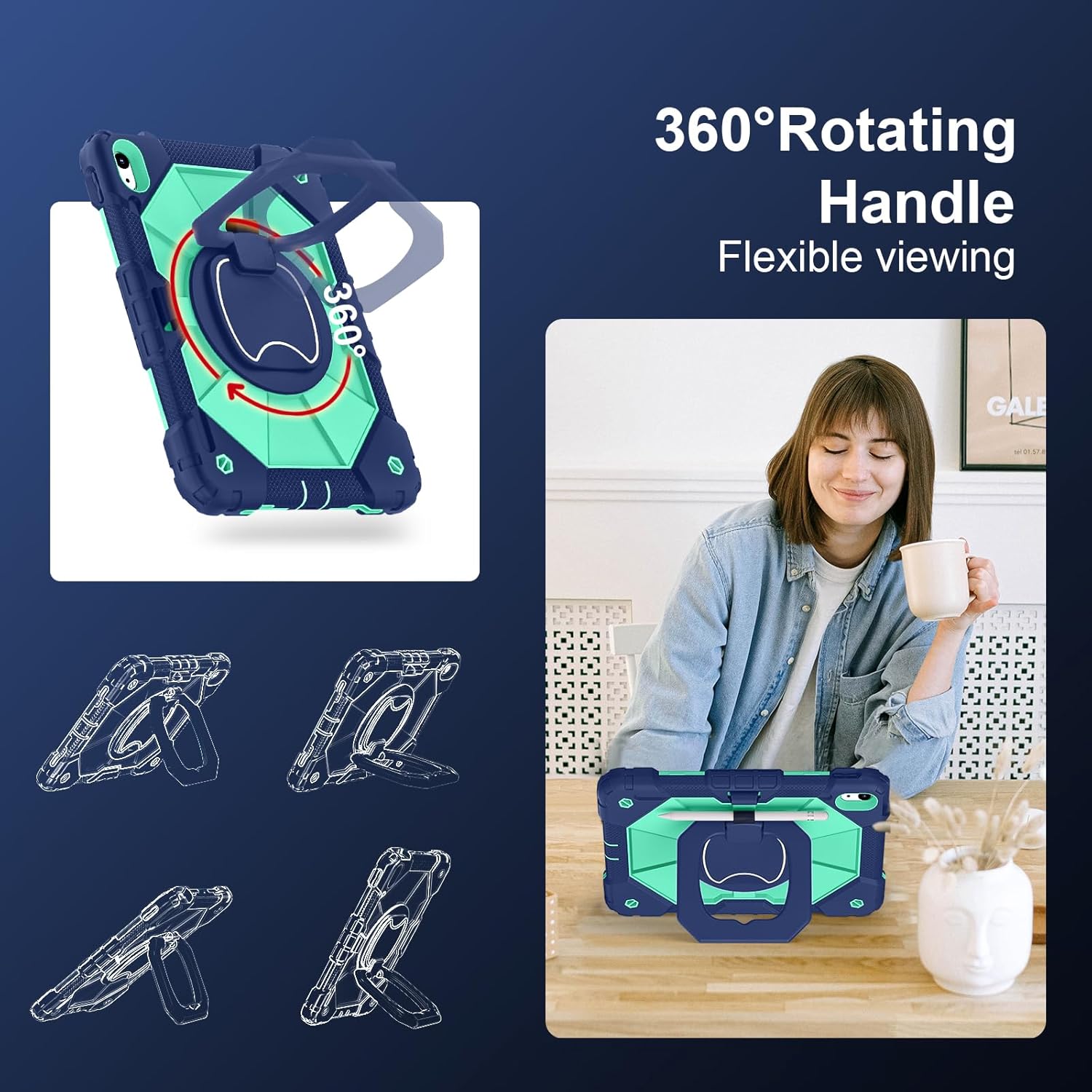 Case for iPad (A16) 11th Generation 11 Inch (2025), iPad 10th Generation Case 10.9 Inch (2022), Shockproof Cover with 360° Rotating Stand Screen Protector Pen Holder Shoulder Strap, Navy Mint