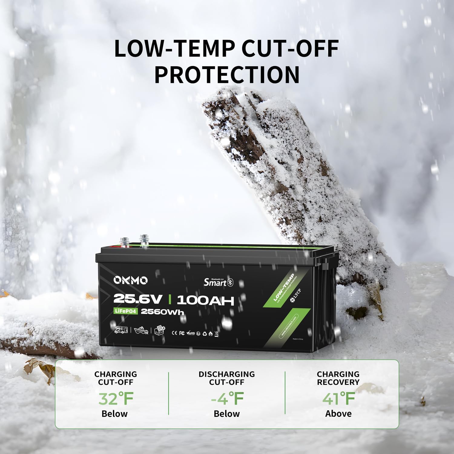 - Robust Protection and Rapid Charging: OKMO's LiFePO4 batteries feature a built-in 100A BMS (Battery Management System) to prevent overcharging, over-discharging, overcurrent, high temperatures, and short circuits. Additionally, we recommend using a dedicated 29.2V 20A lithium charger, enabling a full charge of the battery in just 5 hours