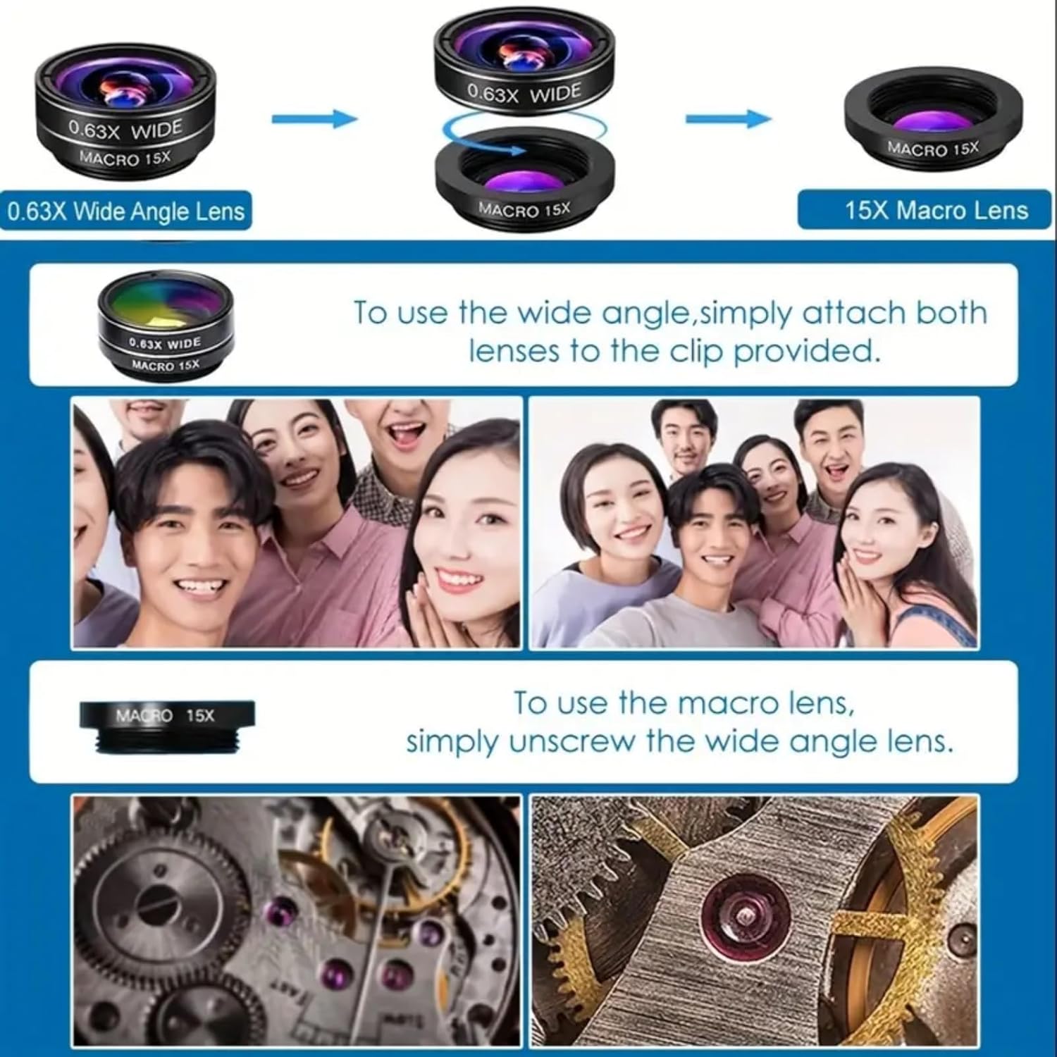 - Camera Lens Description : 1 x wide-angle lens+macro lens kit; 1x 198° Fish eye Lens; 1x Starburst Lens; 1x Kaleidoscope Lens; 1x CPL Mobile Phone Lens; 1 x Long focal lens; 1 x lens holder; 1 x protective storage bag 1 x wide-angle lens+macro lens kit; 1x 198° Fish eye Lens; 1x Starburst Lens; 1x Kaleidoscope Lens; 1x CPL Mobile Phone Lens; 1 x Long focal lens; 1 x lens holder; 1 x protective storage bag