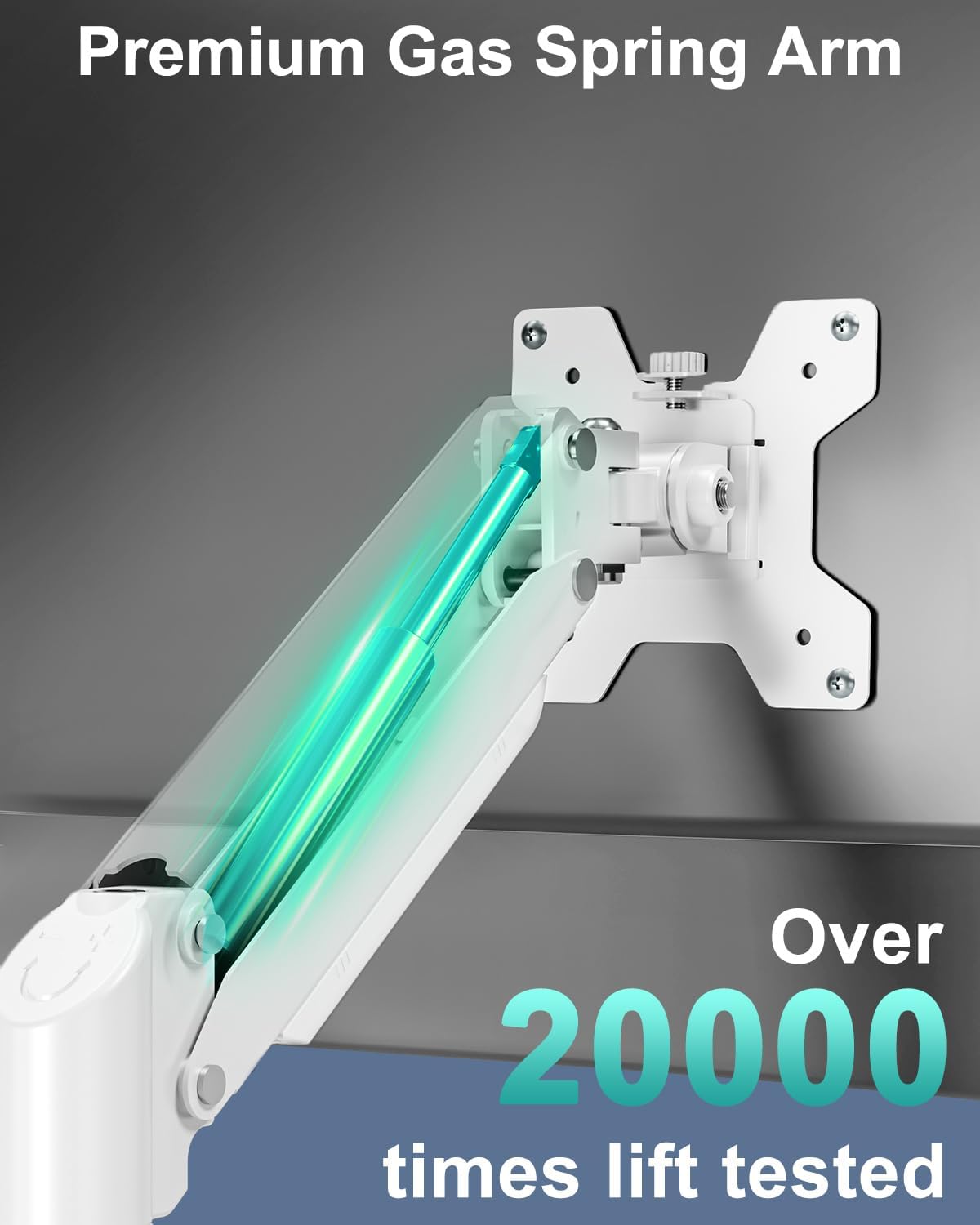 Single Monitor Mount Arm, VESA Desk Mount Stand for 13-32 inch Computer Screen up to 22 lbs, Adjustable Height Tall Monitor Arm with Tilt Swivel Rotation, VESA 75 100mm, White, Freelift