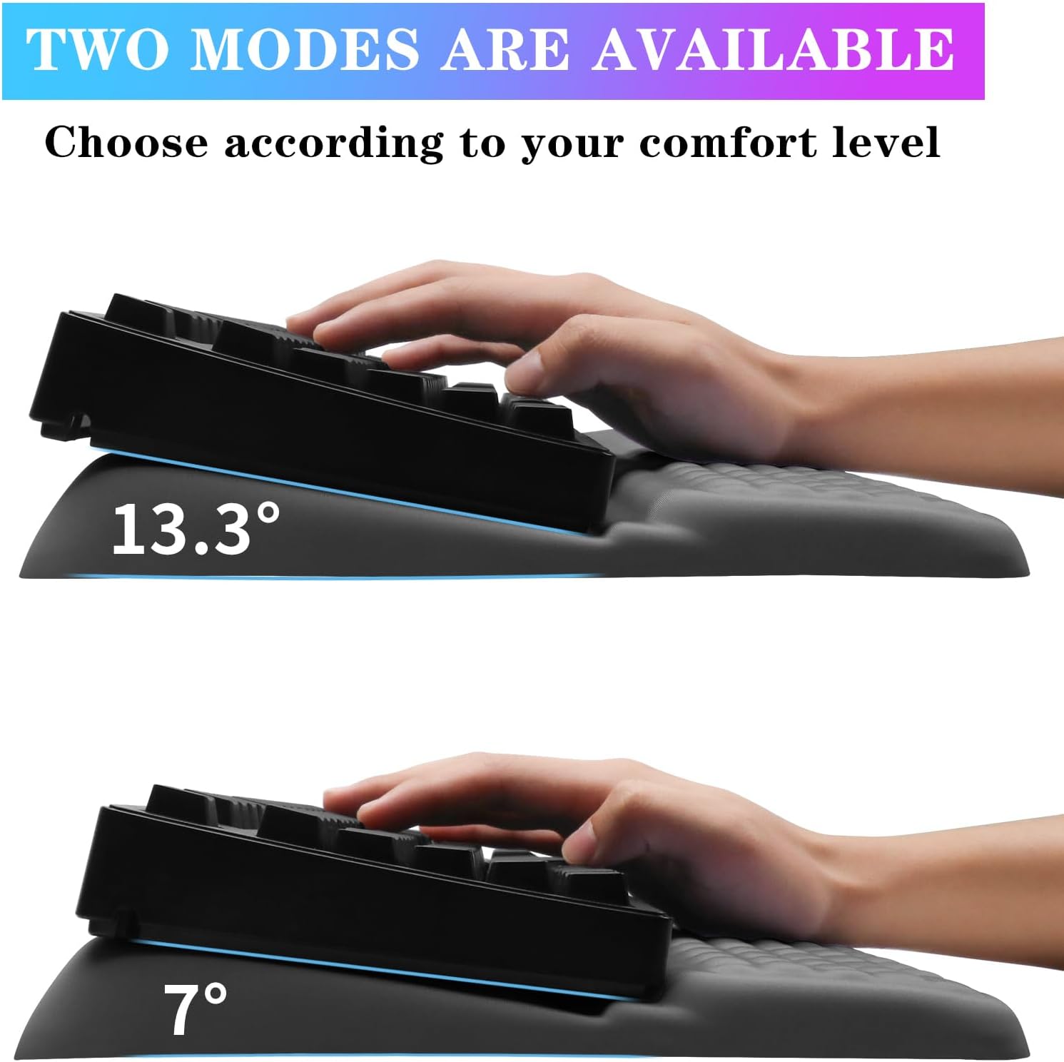 - 【Ergonomic Keyboard Stand】Ergonomic keyboard stand with wrist rest conforms to your wrists for maximum comfort and support. You can adjust the keyboard's position on the keyboard holder according to your comfort. Typing will become very easy.