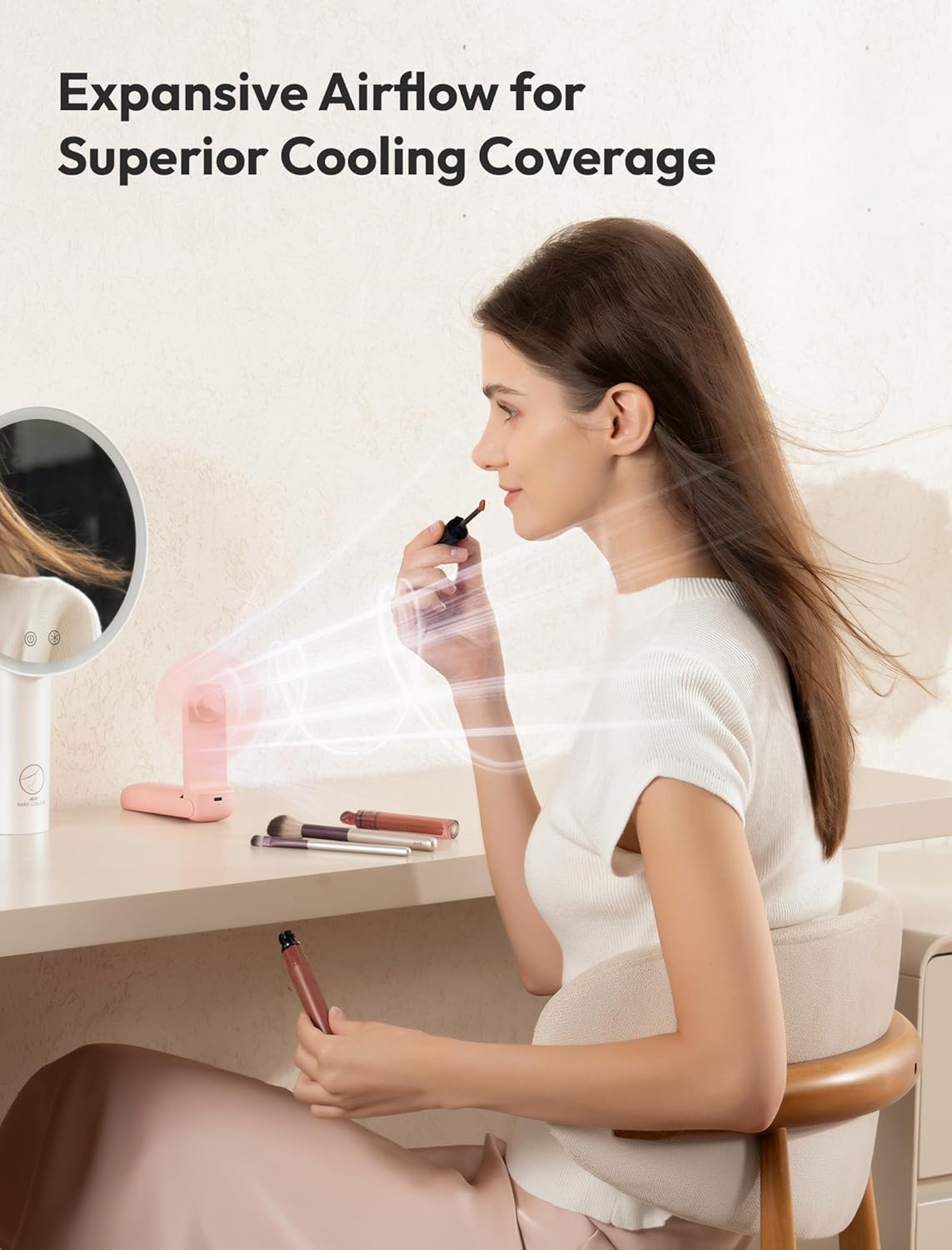 - Handheld & Desktop Versatility: Foldable Pocket Fan Transition seamlessly between handheld portability and a stable desktop mode. The foldable design adapts to any setting, making it perfect for work, travel, or outdoor relaxation