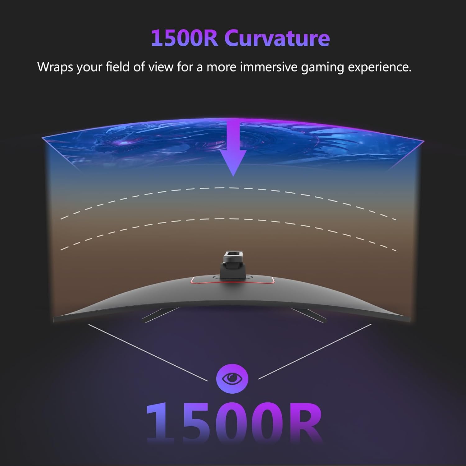- Immersive Curved Screen: The curved design enhances your field of view, drawing you into the action and reducing eye strain during extended sessions. A 3000:1 contrast ratio provides deeper blacks and brighter highlights, adding depth and clarity to every scene for a more lifelike experience.