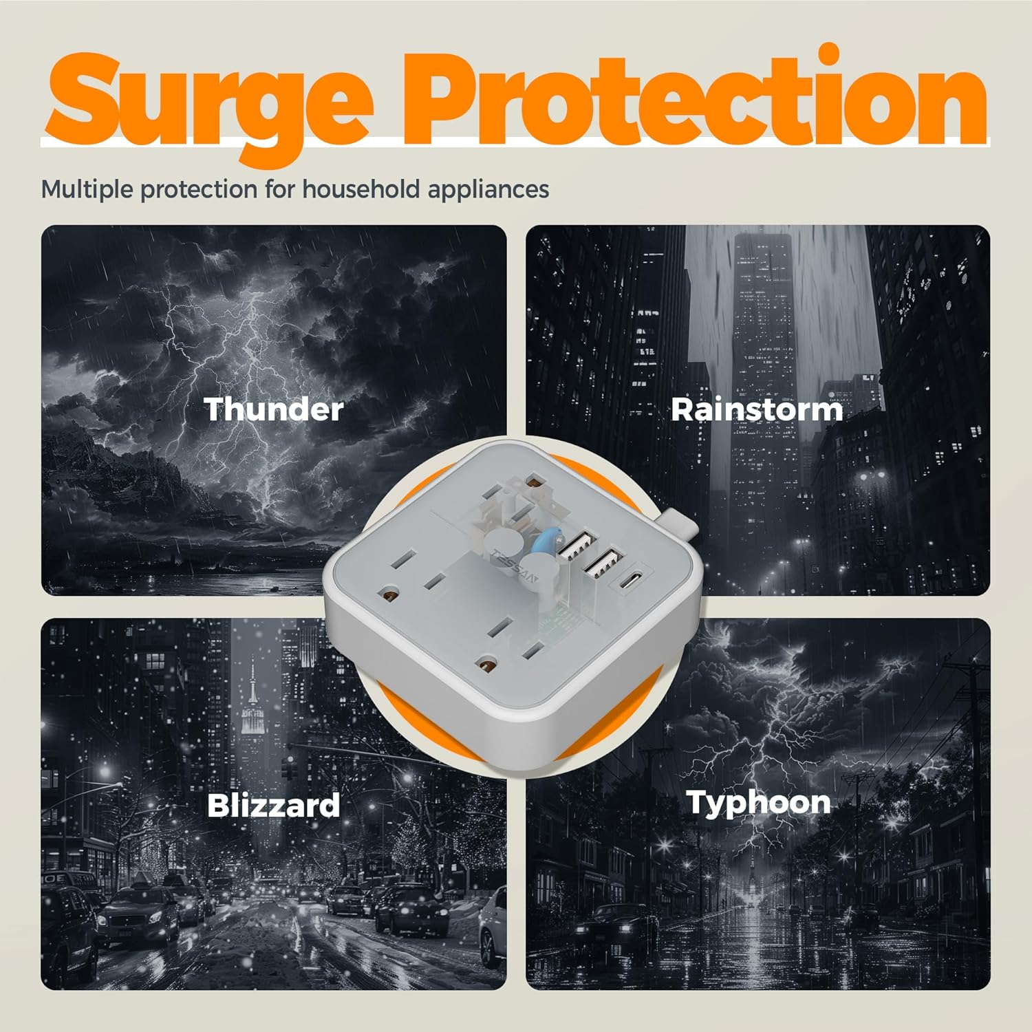 - Space Saving: The size of this USB power strip is 3.46×3.46×1.05 inch, which saves space on your desktop and bench; Surge protector power strip is suitable for use in dorm room, home, office, bedroom, etc