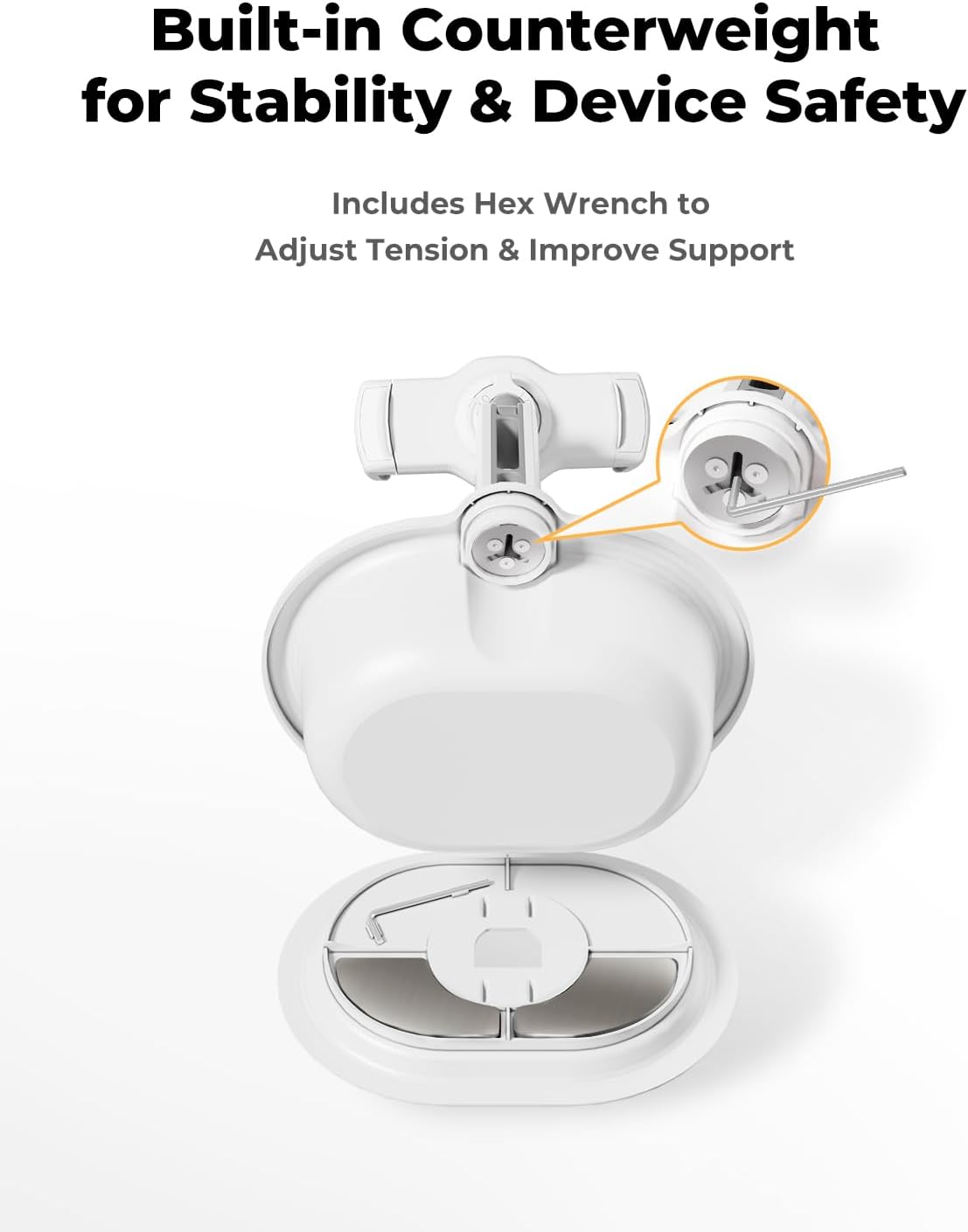 - Stable & Supportive Base – The weighted cushion provides stability without being heavy. Enjoy a hands-free experience without worrying about your stand slipping or tipping over.