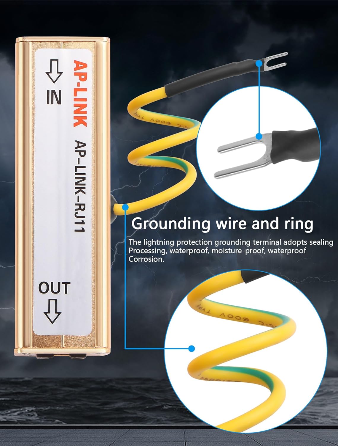 - Easy Installation: Simply connect the "IN" end to your line and the "OUT" end to your device, then ground the wire. NOTE!!! The lightning protection grounding wire of this product should be directly connected to the lightning protection grounding wire of the computer room during installation.