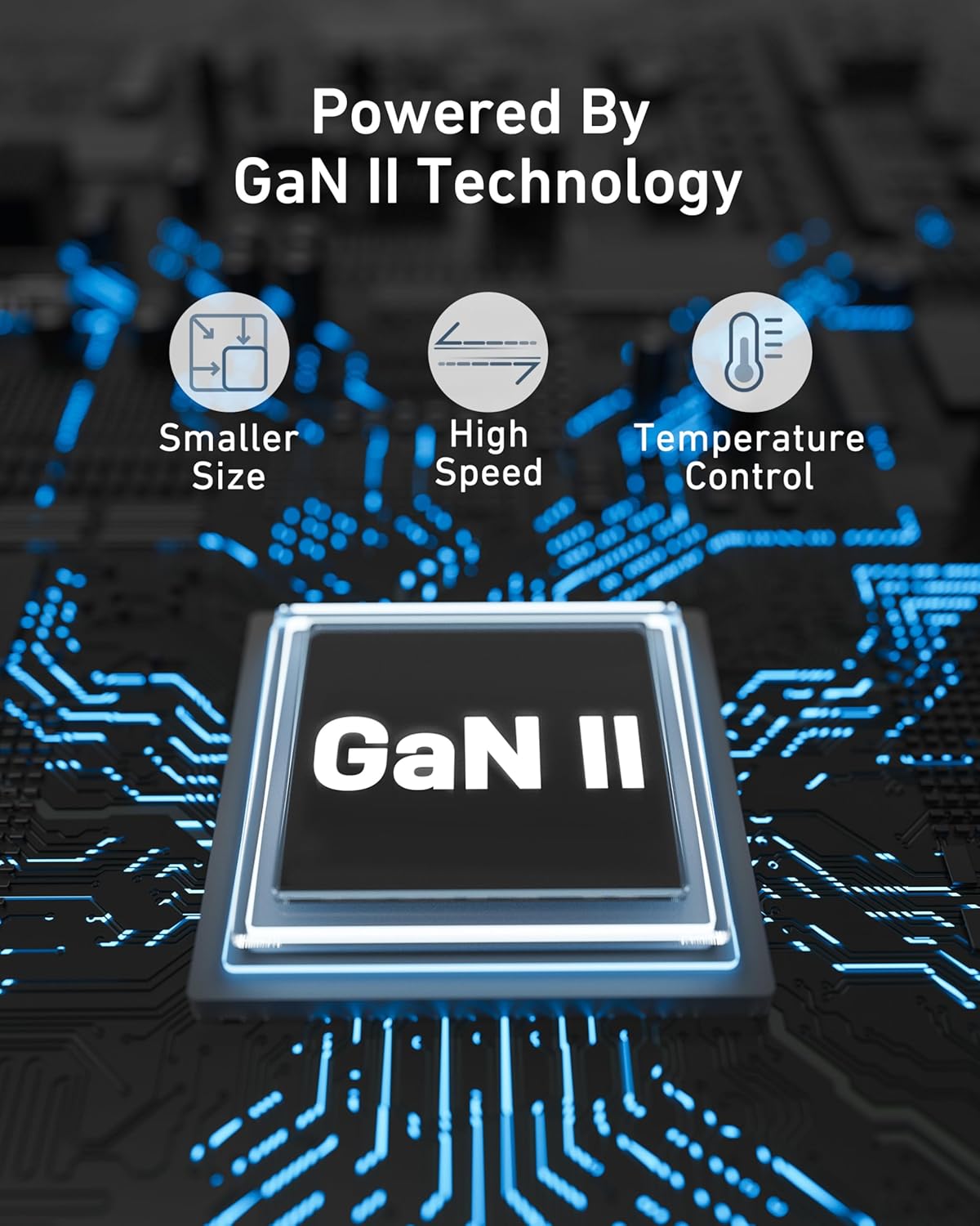- Ultra-Slim Design: Features GaN II technology for more compact design. Perfect for narrow spaces behind beds, sofas and other furniture, saving you space