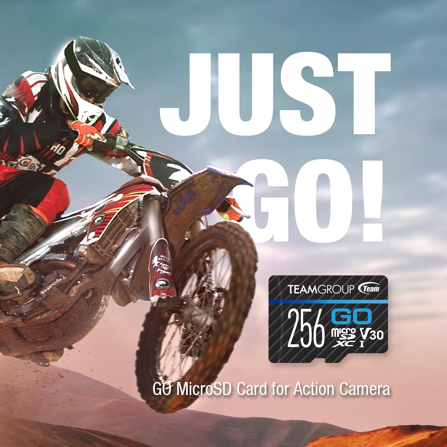 TEAMGROUP GO Card 256GB Micro SDXC UHS-I U3 V30 4K for GoPro & Action Cameras High Speed Flash Memory Card for Outdoor, Sports, 4K Shooting TGUSDX256GU302