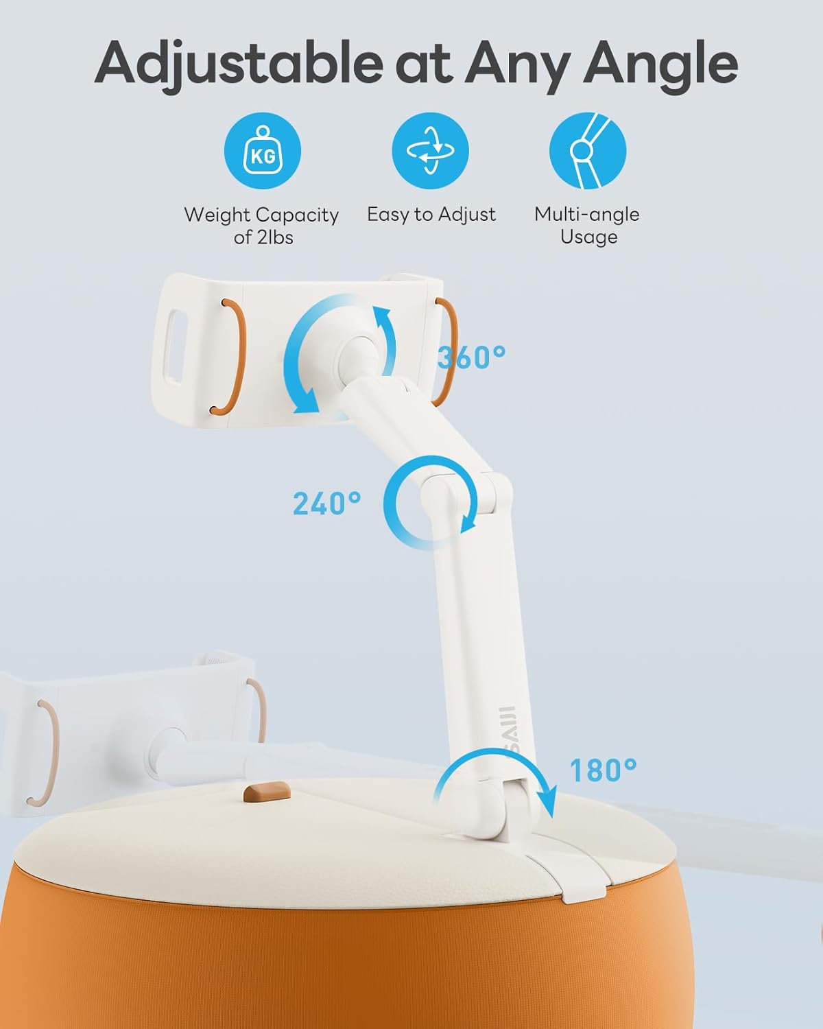 - Upgraded Double-jointed Arm: Deformable bean bag & 360° clamp mount & flexible Upgraded Double-jointed Arm meet the comfort of watching the screen when you are sitting, lying down or even reclining. So you can free your hands while relaxing your neck and keeping your sight aligned.