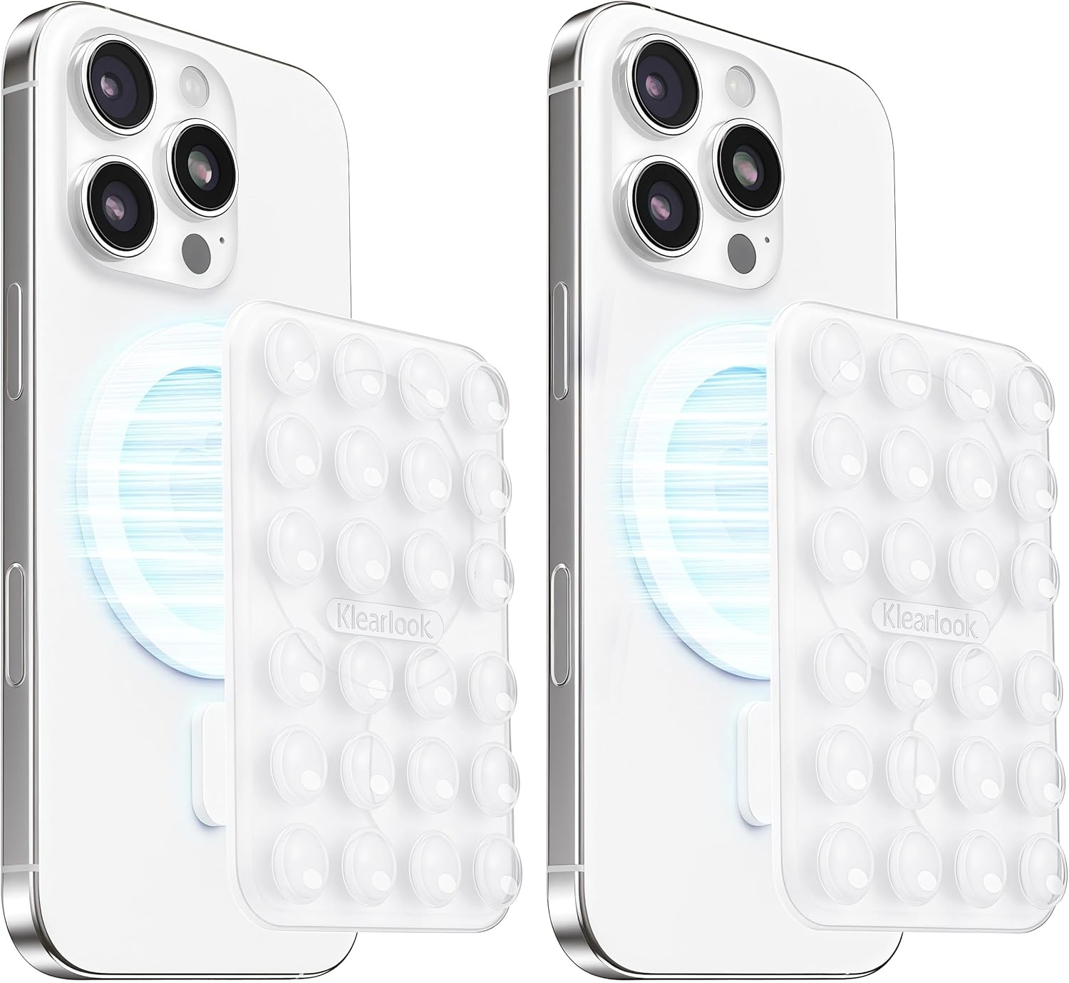Klearlook 2PCS Magnetic Suction Phone Mount for MagSafe Case, Sticky Phone Grip Holder for iPhone, Removable Hands-Free Selfie/Video for TikTok Influencers, Women Girl Teen Gift, Transparent