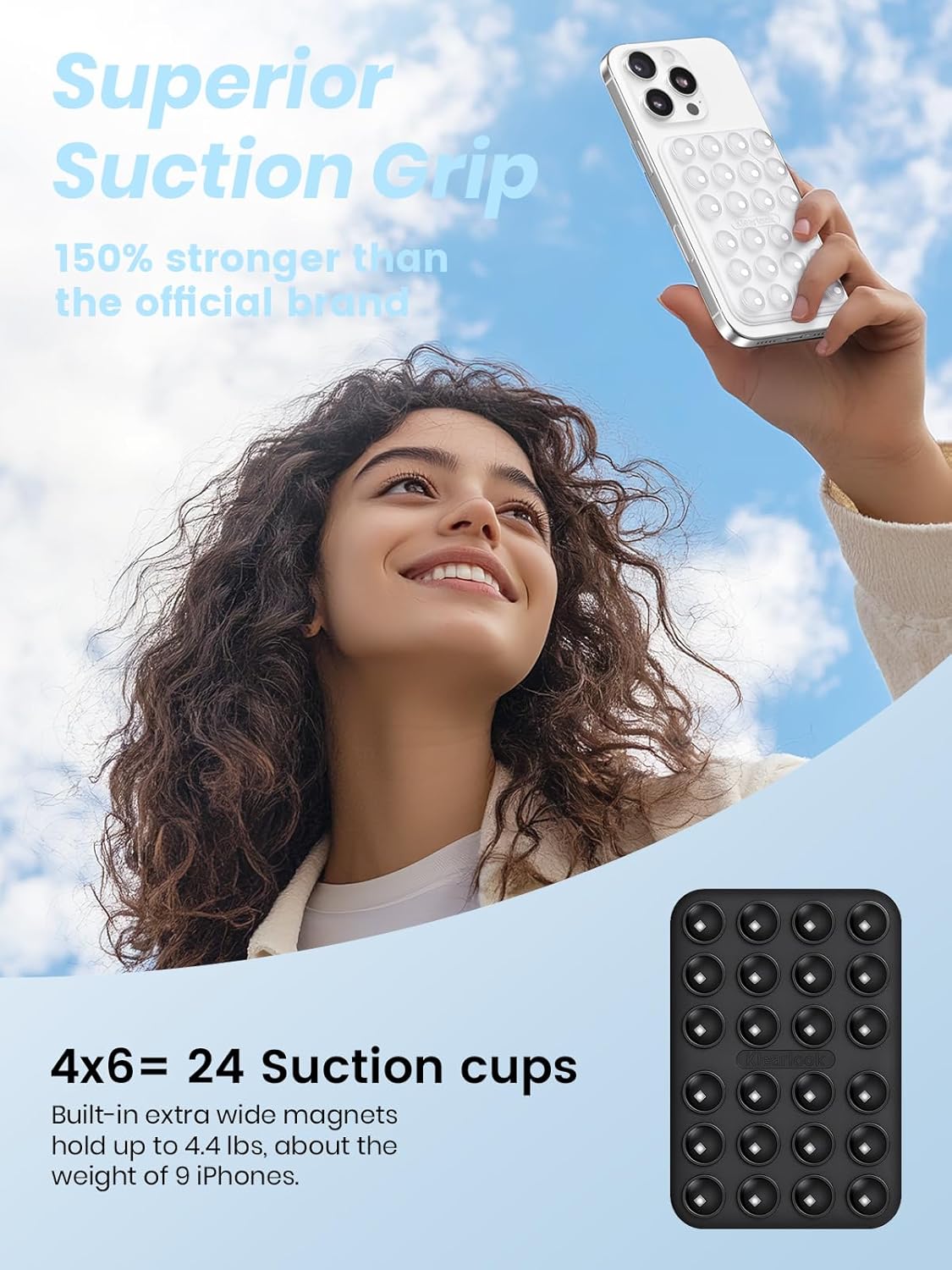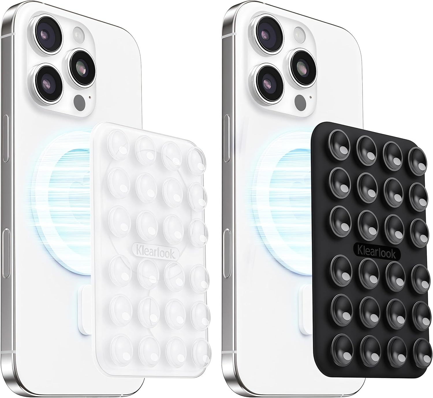 Klearlook 2Pack Magnetic Suction Phone Mount for MagSafe Case, Sticky Phone Grip Holder for iPhone, Removable Hands-Free Selfie/Video for TikTok Influencers, Women Girl Teen Gift, Transparent & Black
