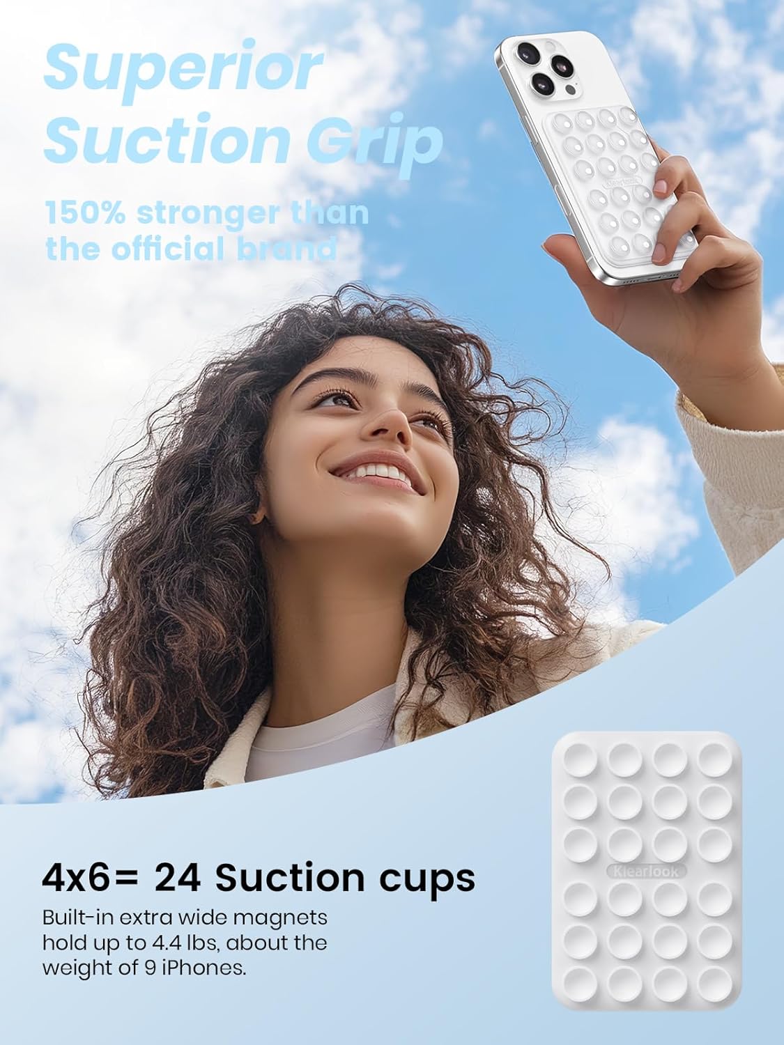 Klearlook 2Pack Magnetic Suction Phone Mount for MagSafe Case, Sticky Phone Grip Holder for iPhone, Removable Hands-Free Selfie/Video for TikTok Influencers, Women Girl Teen Gift, Transparent & White
