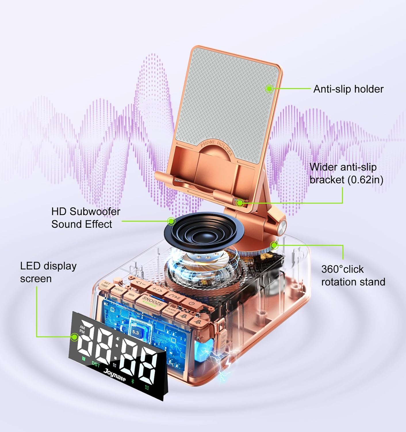 - 3 in 1 Bluetooth Speaker Phone Stand with Clock- Enhance your desk setup with a sleek accessory that not only holds phone, plays music but manages time efficiently. This phone holder supports a wide range of smartphones, tablets. A versatile gadget for wife/girlfriend, mother, and daughter, which definitely delight her.