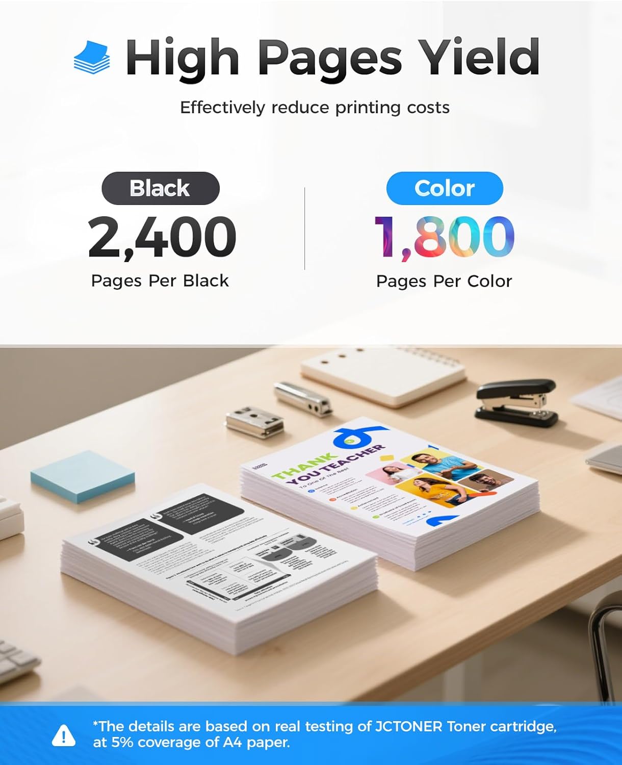 - High-Yield: up to 2,400 pages per 128A Black and 1,800 pages per 128A Color (Total 7,800 pages, 5% coverage).