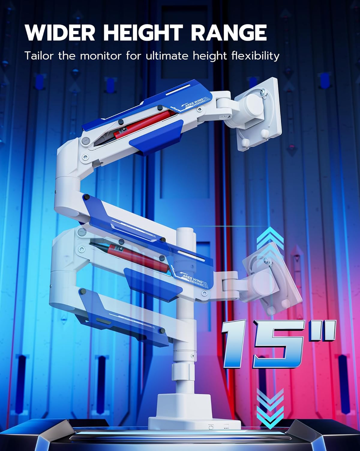 ARES WING Single Monitor Mount, Ultrawide Monitor Arm for 24 to 57 Inch Heavy Duty Curved Screen, Adjustable Gas Spring Monitors Arm Stand up to 66LBS with 75/100/200 Vesa Mount, White