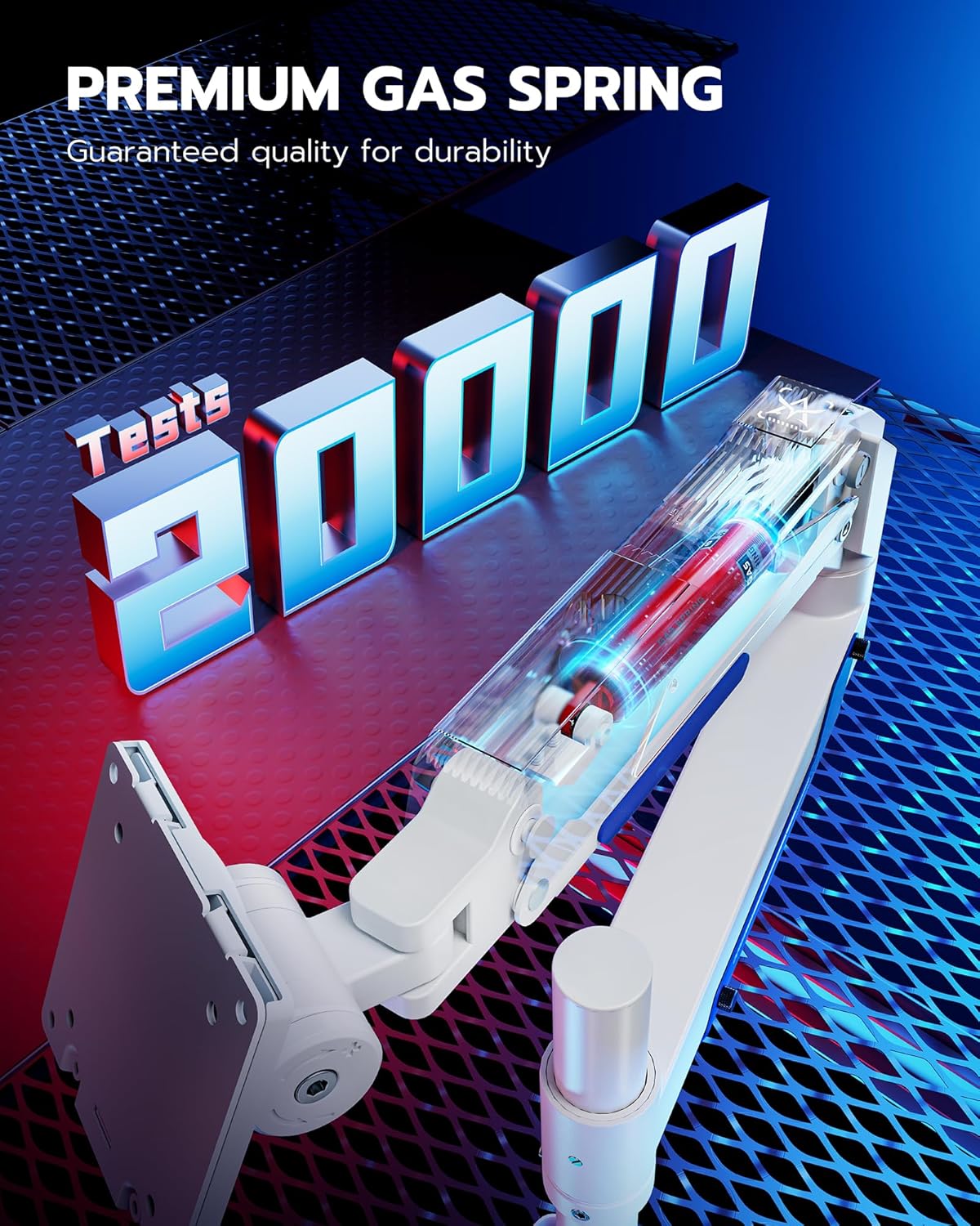 - 【Stability and Durability】Crafted for heavy-duty use, this single minitor arm features a premium build with reinforced aluminum and high-quality steel. Surviving over 20,000 fatigue tests, this monitor mount offers reliable support and stability for ultrawide and heavy duty monitors, ensuring peace of mind for users. The single monitor desk mount features infustrial-grade gas springs, ensuring effortless adjustments