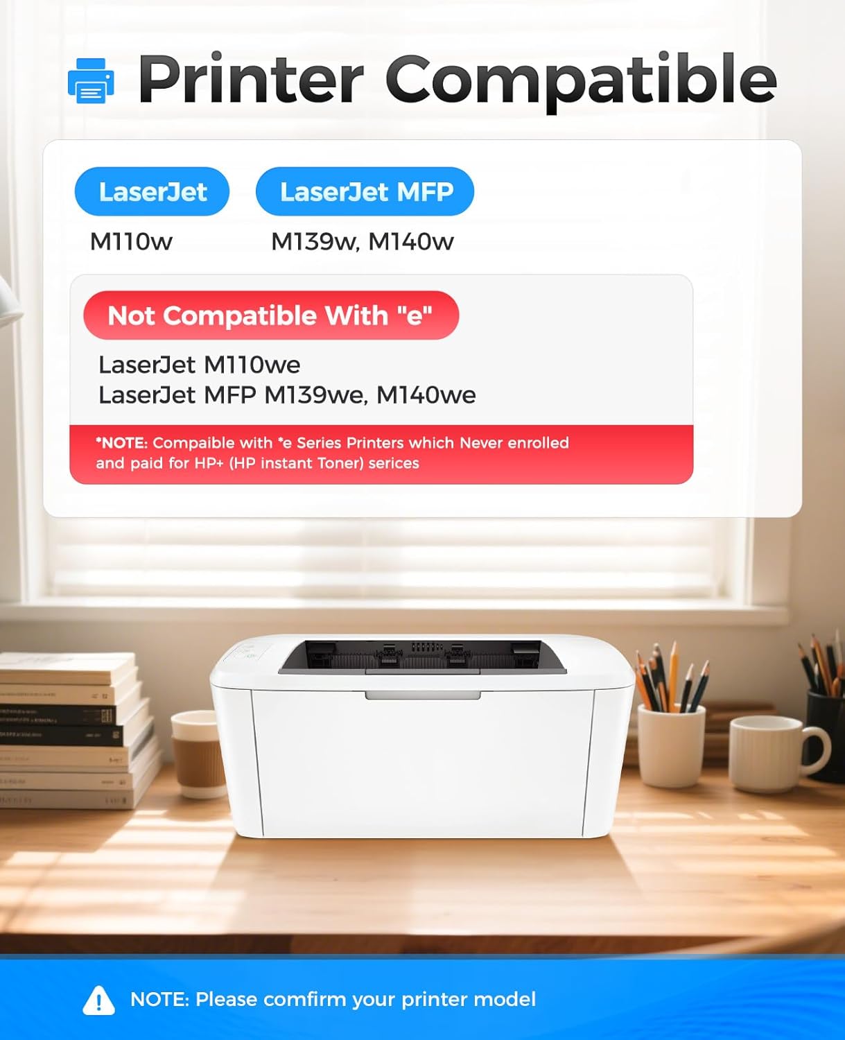- Compatible Printers: Compatible with HP LaserJet M110w MFP M139w M140w Printer. Not Compatible for HP Laserjet M110we M139we M140we Printer.not Compatible for "HP+" Service "e" Series Printer.