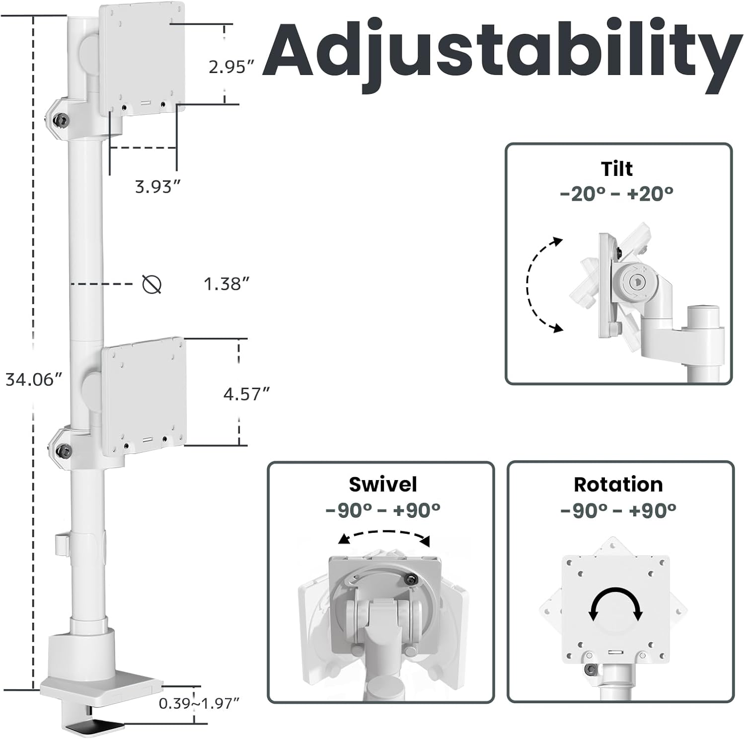 Dual Monitor-Arm Heavy Duty Ultrawide - 24-57 inch Vertical Dual Monitor Mount, Adjustable Stacked Double Monitor Desk Mount Stand, Max Load 59.4 lbs (per Screen), VESA 75/100 mm, White