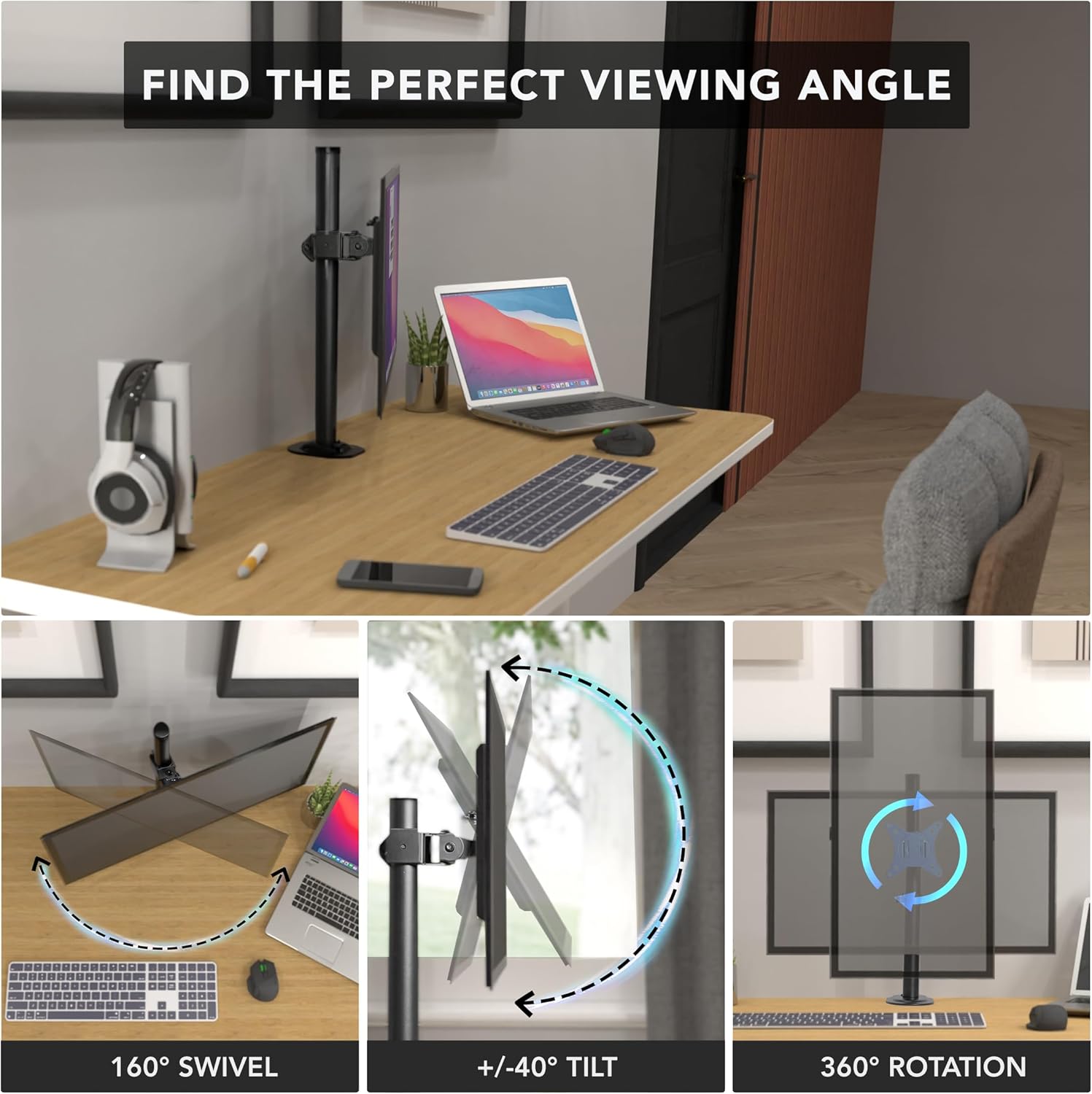 Mount-It! Single Monitor Desk Mount – Computer Screen Stand with Full Motion Adjustability – VESA Monitor Bracket Up to 32" 19.8 lbs – 360° Rotation, 160° Swivel, 40° Tilt – Clamp & Grommet Base