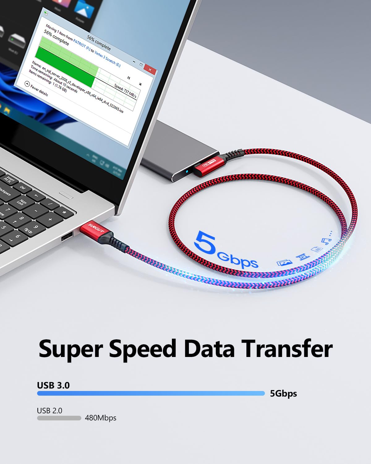 - 【5Gbps Data Transfer】SUNGUY USB C data cable supports high-speed data transfer up to 5 Gbps. You can transfer HD movies or songs to your USB-C SSD in seconds. [Note: Does not support video output.]