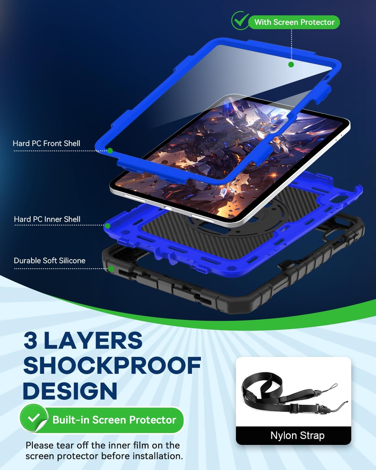 - Built-in Screen Protector: This case for iPad 10th generation kids made of durable hard PC & silicone, 3-layer full body protection structure with SCREEN PROTECTOR, provide a military grade protection & anti-scratch.