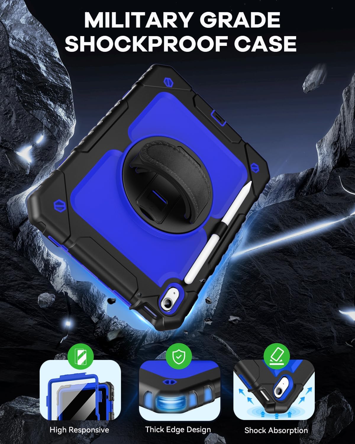 Cantis Case for iPad 11-inch (A16) 2025/ iPad 10th Generation 2022 (10.9 inch) with Screen Protector, iPad 11th Case with 360 Degree Rotating Stand/Shoulder Strap/Pencil Holder, Black+Dark Blue