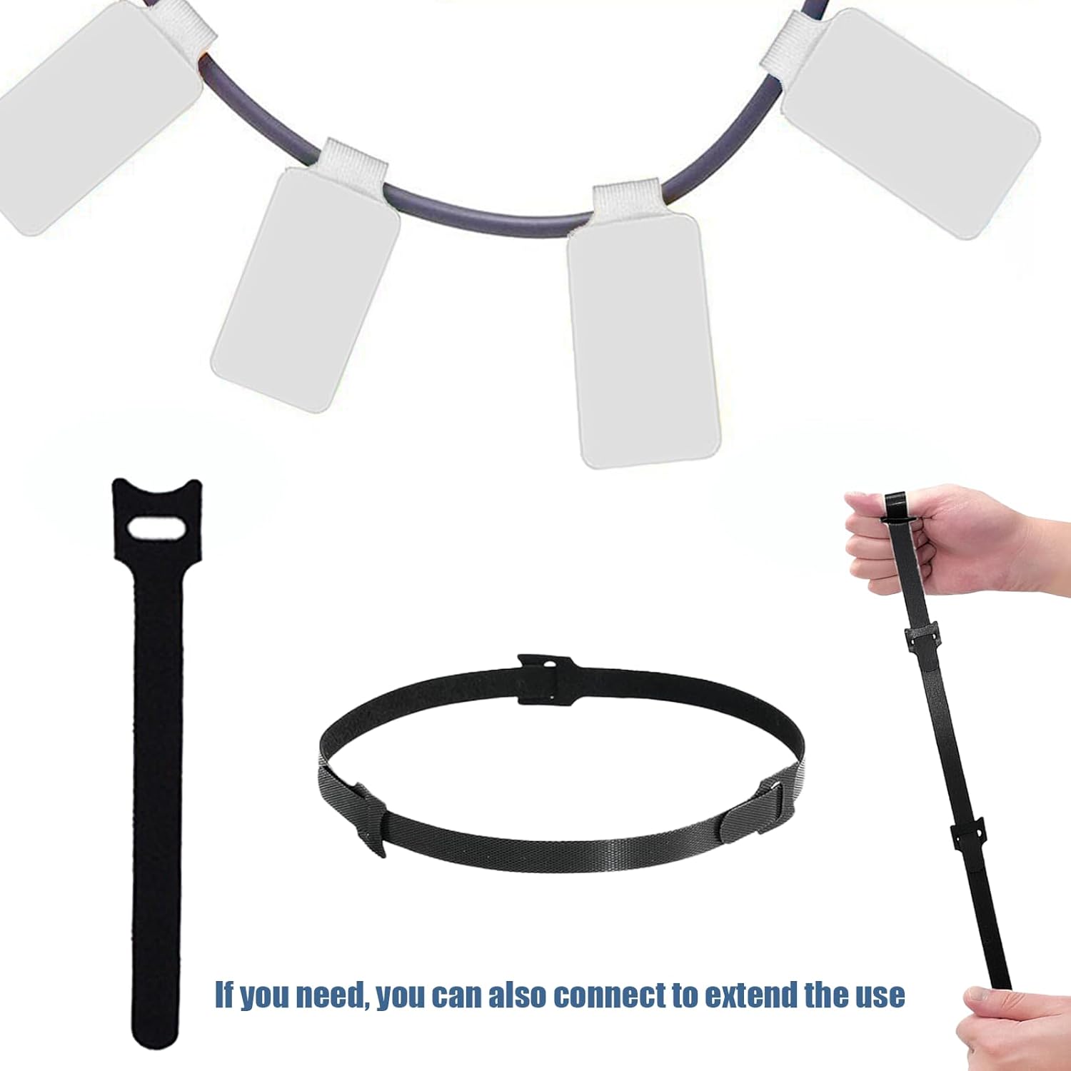 100 Pack Reusable Hook & Loop Cable Ties & Labels Kit - 50 Durable Cord/Wire Tags + 50 Self-Gripping Straps for Electronics Organizing, Home Office Cord Management (White & Black)