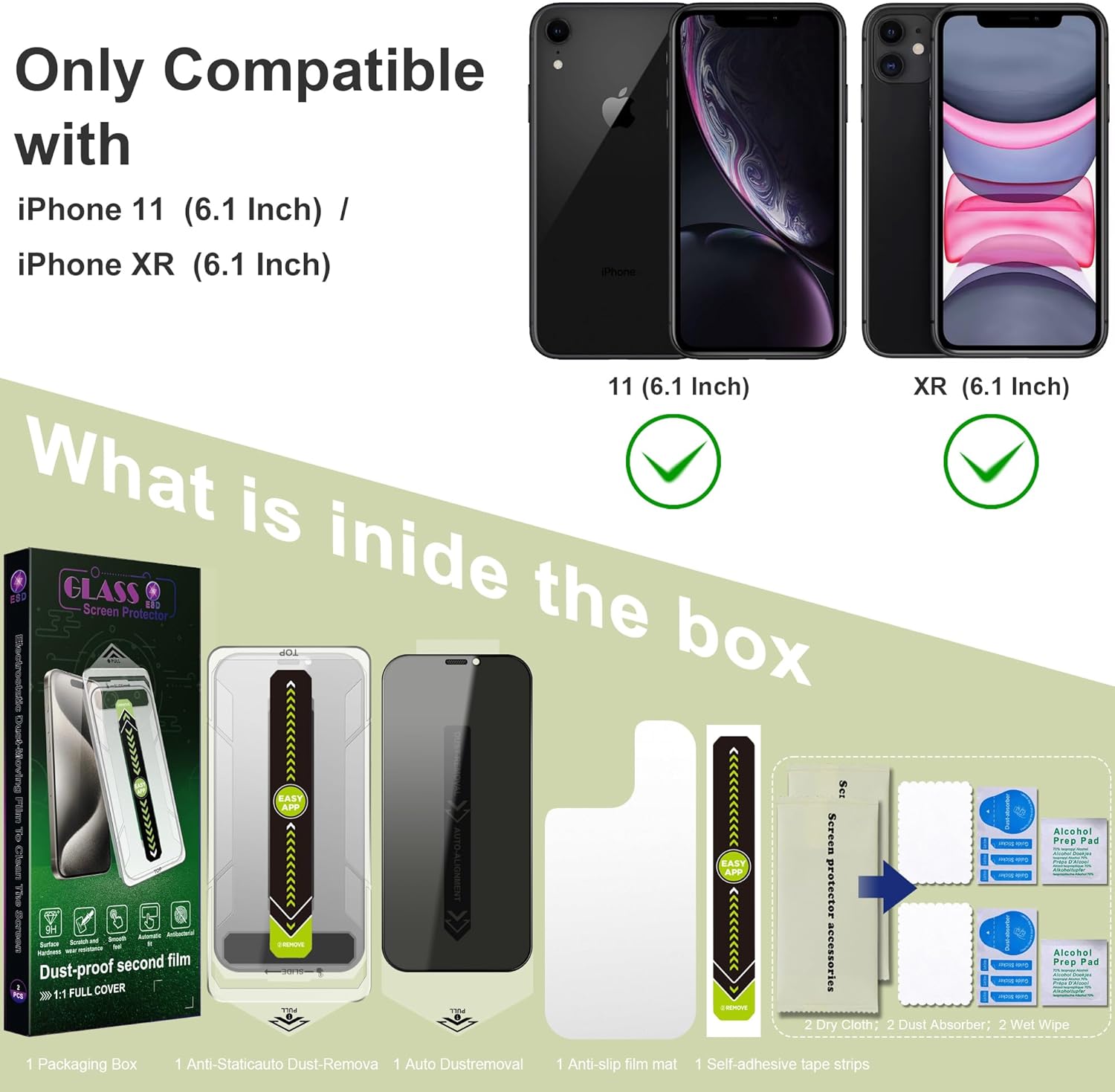 (2-Pack Anti-Spy Privacy Screen Protector for iPhone 11/XR(6.1-Inch),9H Tempered Glass,Full Coverage,Anti-Fingerprint,Auto Dust Removal,Bubble-Free,Easy Installation
