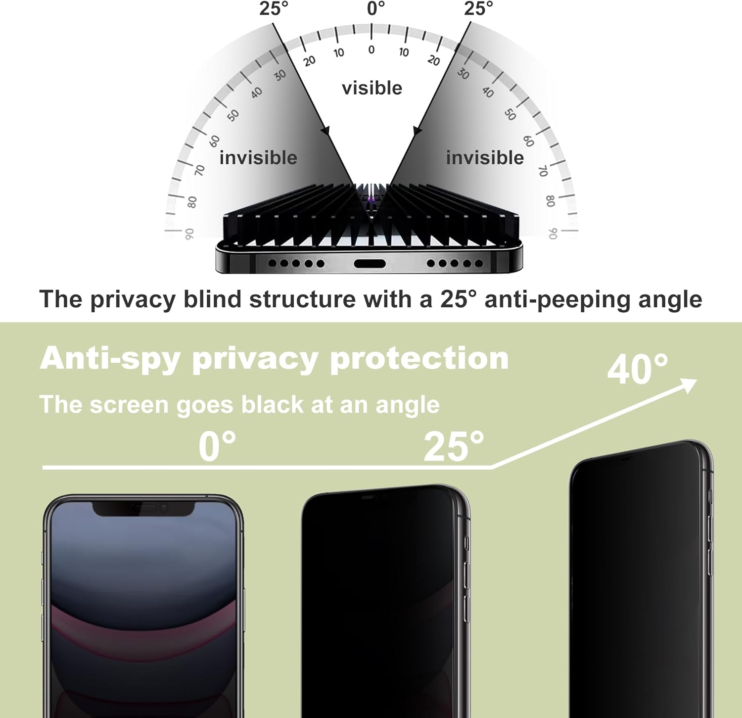 - 25°Privacy Protection: This iPhone 11/XR privacy screen protector features advanced 25°anti-spy technology to keep your personal and business information safe from prying eyes in public.It delivers strong privacy protection while resisting fingerprints,water,and dust.Enjoy crystal-clear visuals,ultra-responsive touch,and a true bare-screen feel with zero delay—perfect for use on subways,buses,airplanes,and other public places
