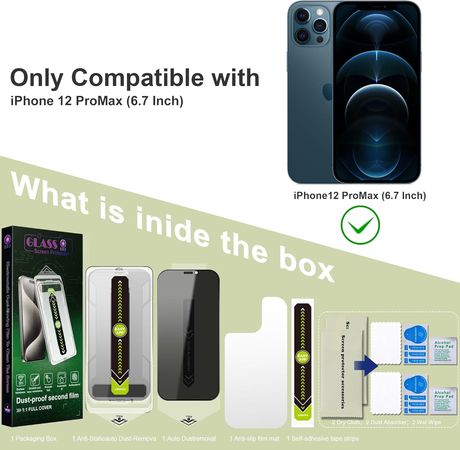(2-Pack Anti-Spy Privacy Screen Protector for iPhone 12 Pro Max(6.7-Inch),9H Tempered Glass,Full Coverage,Anti-Fingerprint,Auto Dust Removal,Bubble-Free,Easy Installation