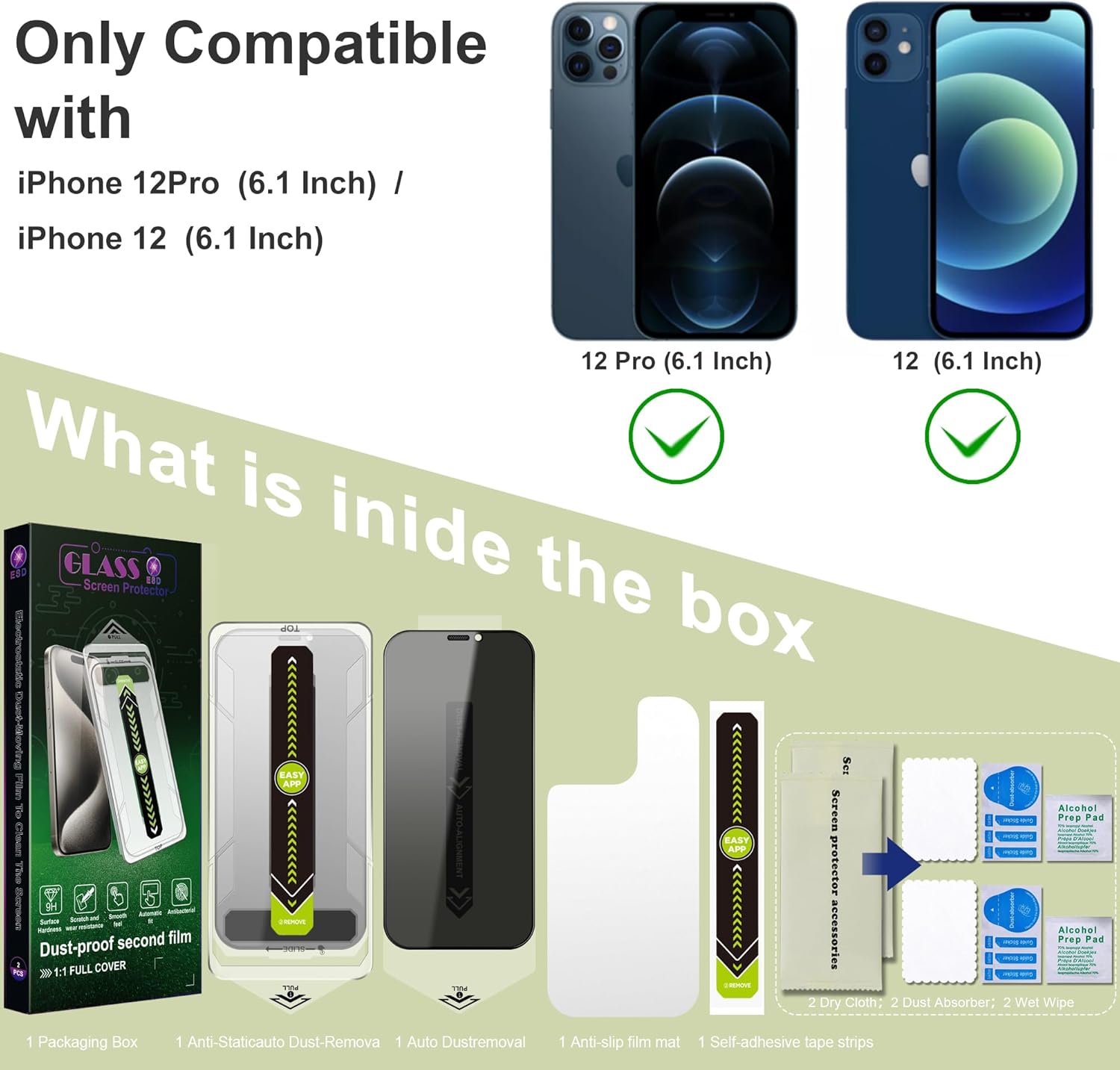 (2-Pack Anti-Spy Privacy Screen Protector for iPhone 12/12 Pro(6.1-Inch),9H Tempered Glass,Full Coverage,Anti-Fingerprint,Auto Dust Removal,Bubble-Free,Easy Installation