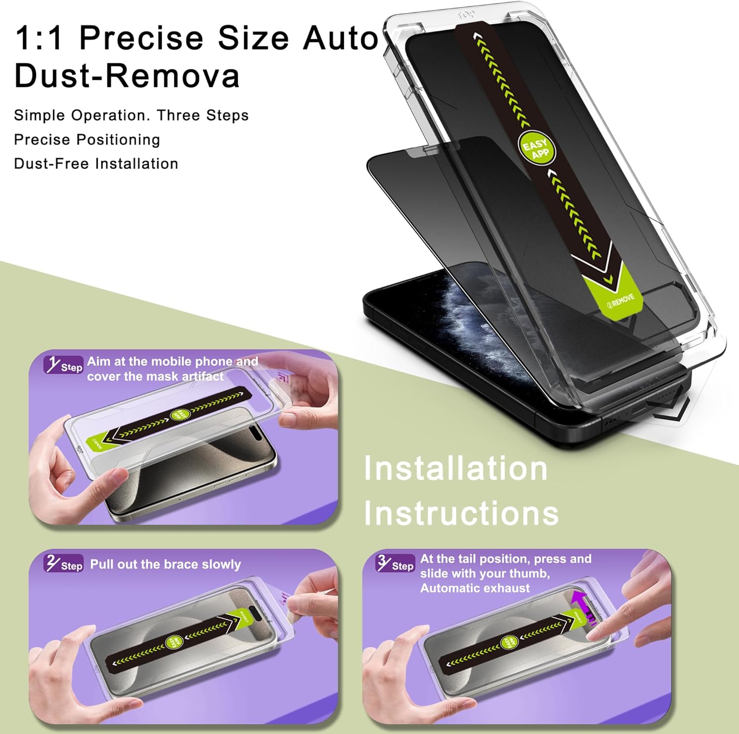 - Auto Dust Removal & Easy Installation: The SY SHANGYAN Matte Privacy Anti-Spy Screen Protector for iPhone 11 Pro Max/XS Max features advanced auto dust removal and self-aligning technology for a flawless,bubble-free install every time.Just place the frame,pull the tab,and press to push out any air bubbles.Installation is quick,easy,and hassle-free.For best results,watch our step-by-step installation video before applying
